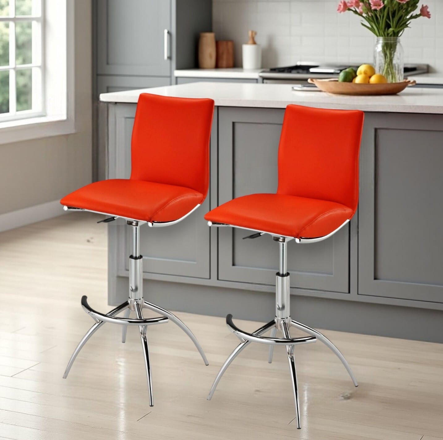 Original price was: $384.99.$230.62Current price is: $230.62. Add to cartSet of Two Orange And Silver Faux Leather And Metal Low Back Adjustable Height Bar Chairs