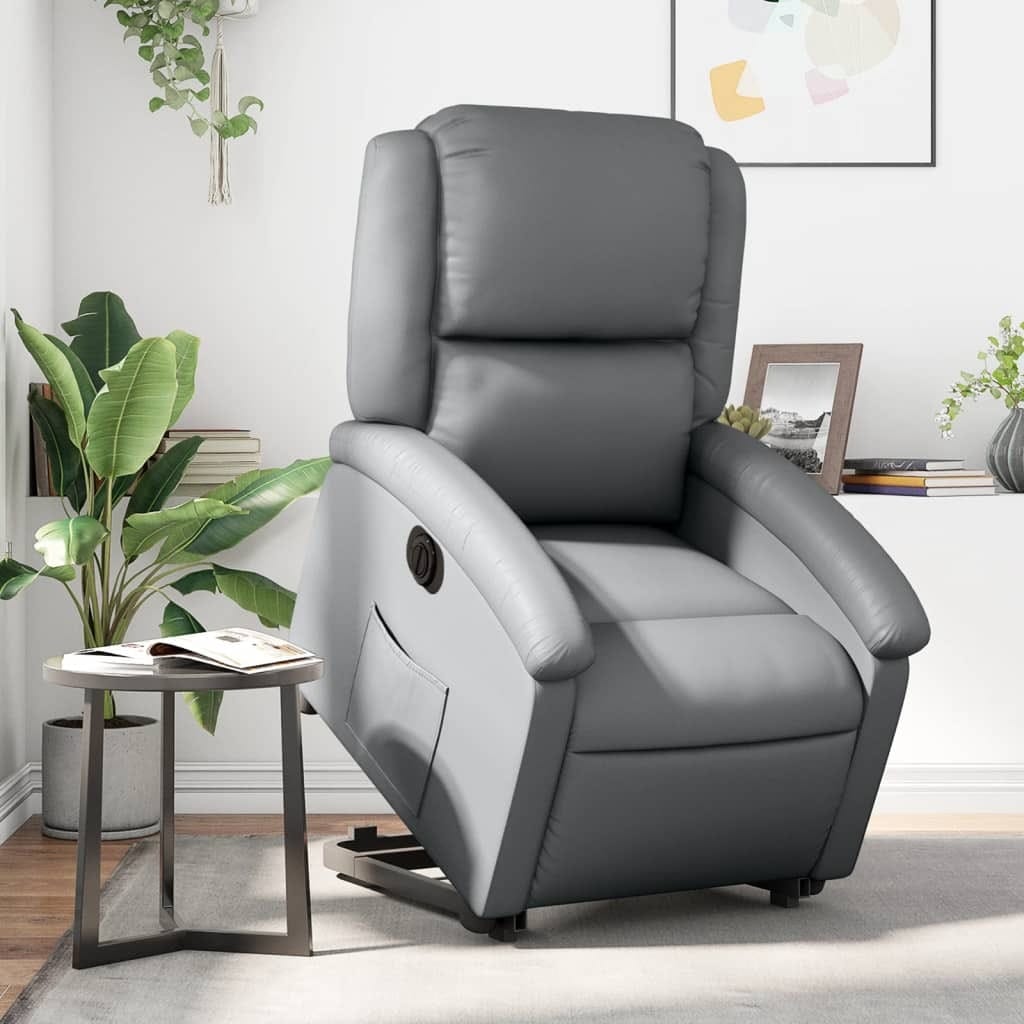 Original price was: $507.25.$425.41Current price is: $425.41. Add to cartStand Up Massage Recliner Chair Grey Faux leather, metal, plywood