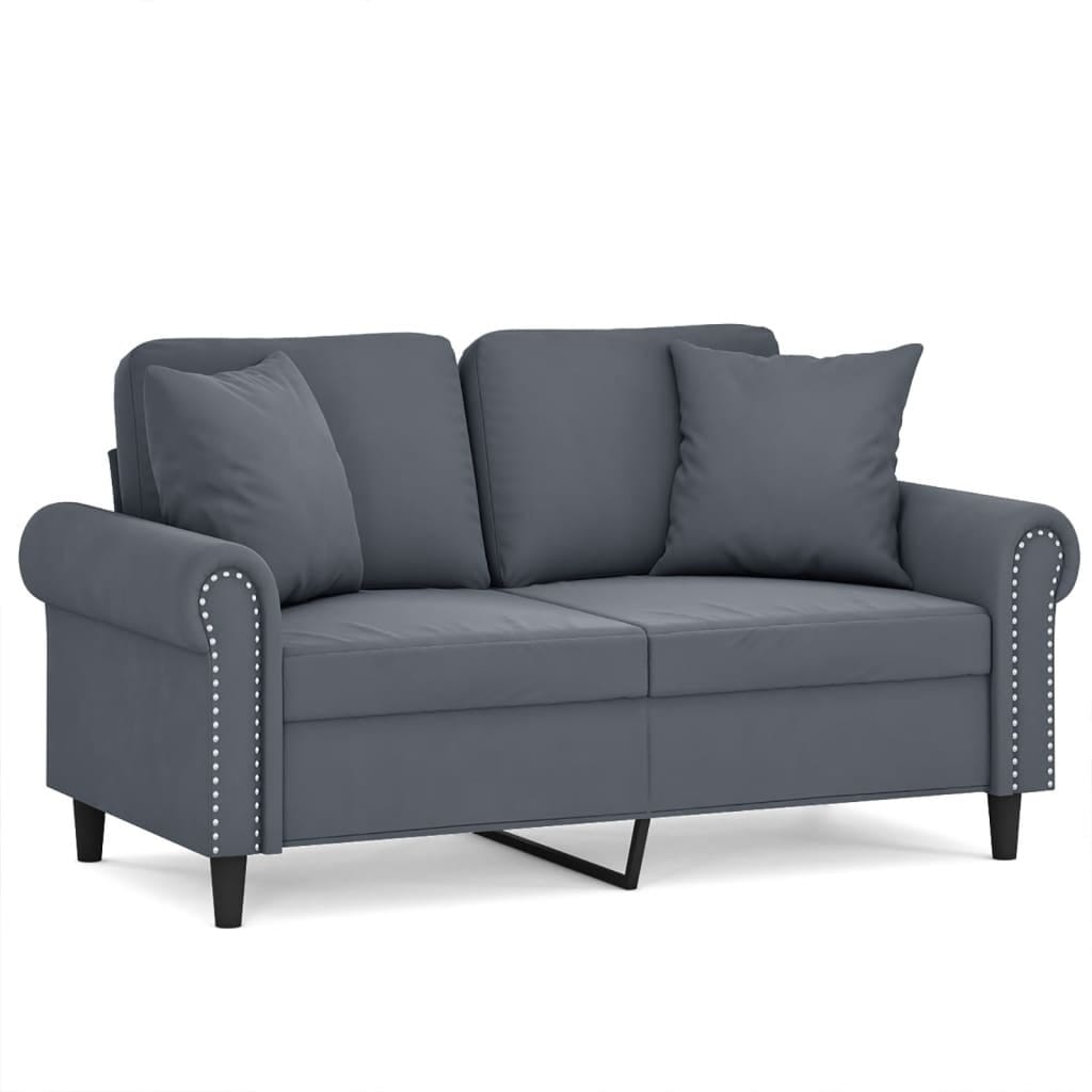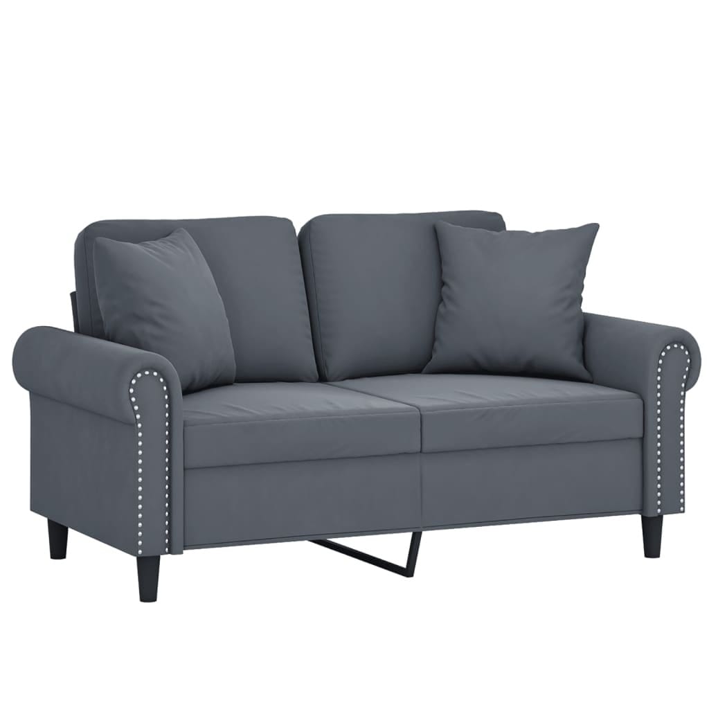 This modern 2-seater sofa, done up in classy dark grey velvet, is all about style and comfort. Its soft seat and back cushions make it the perfect place to chill out, fitting right into any living room or office. With its sleek look and room for two, this adaptable piece is just right for enjoying a good book, having a chat, or kicking back after a long day.