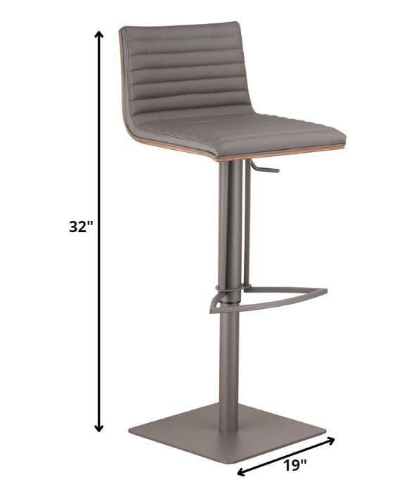 Redefine your space with this beautiful Grey Faux Leather Armless Swivel Bar Stool with Grey Metal Base. The adjustable stool comes with a lever right under the cushion seat that allows you to adjust the stool to your preferred height. What we love most about this stool is its horizontal channel stitch. It creates a modern chic to the entire stool design and it will definitely catch anybody’s attention. Upholstered in luxurious faux leather, the stool’s foam cushion will provide enough comfort that will make your relaxation time worthwhile, even if you’re spending longer periods sitting. The base is built from strong metal with a beautiful footrest that provides a stylish aesthetic besides being very functional. This ergonomically designed masterpiece is a great choice for your home bar, kitchen island, or peninsula counter. 43″ x 16″ x 17″