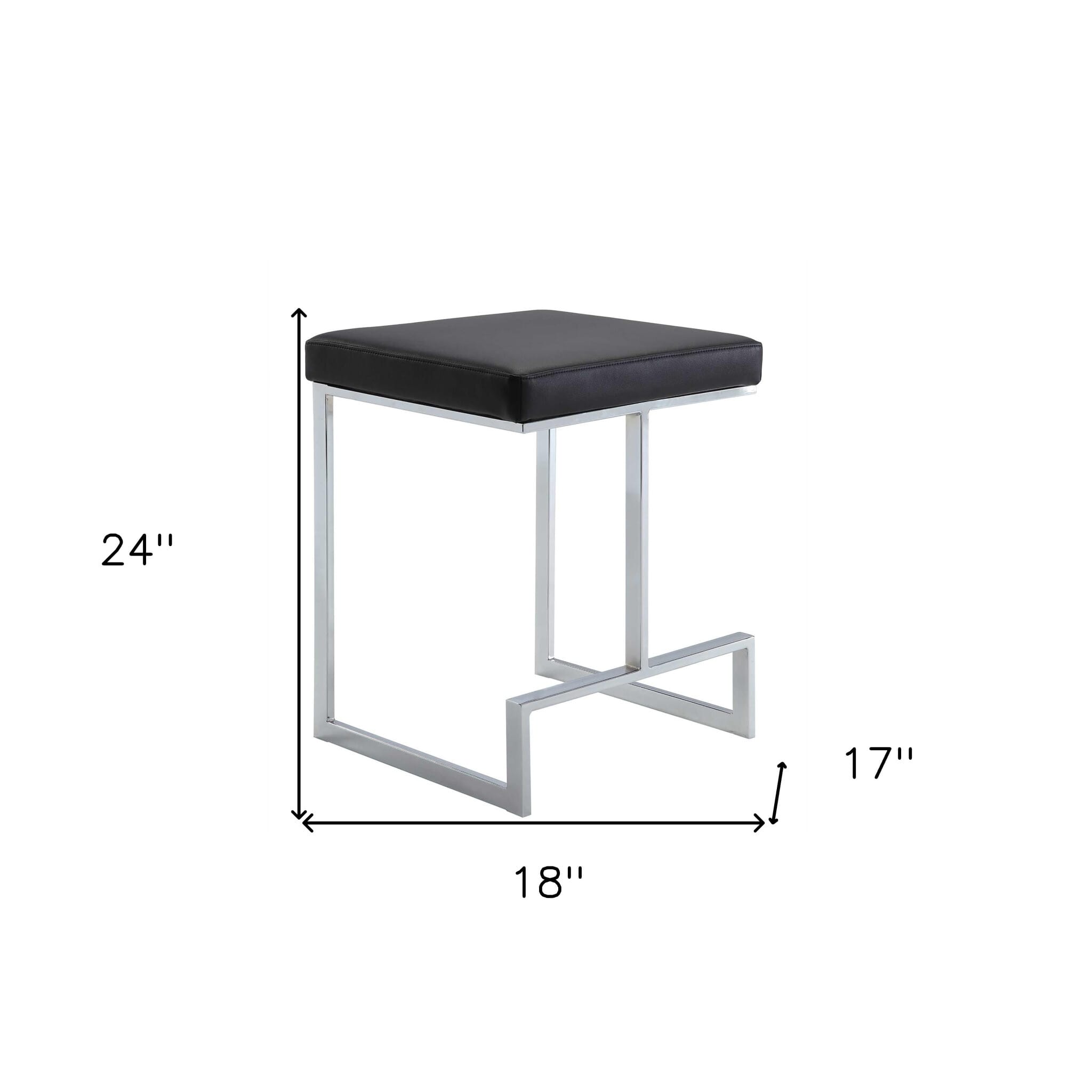 Comfort and design come together nicely in this 24″ black faux leather and steel backless counter height bar chair. The black faux leather seat of this stool is a nice contrast to the high quality, chrome steel of the base. A backless mixed with a square shaped seat makes this chair both comfortable and fashionable. A great seating option, this stool will bring a unique look to any room. 24″ H x 17″ W x 18″ D