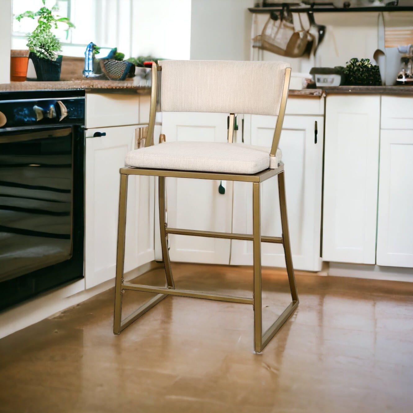 25″ Beige And Antiqued Brass Steel Low Back Counter Height Bar Chair