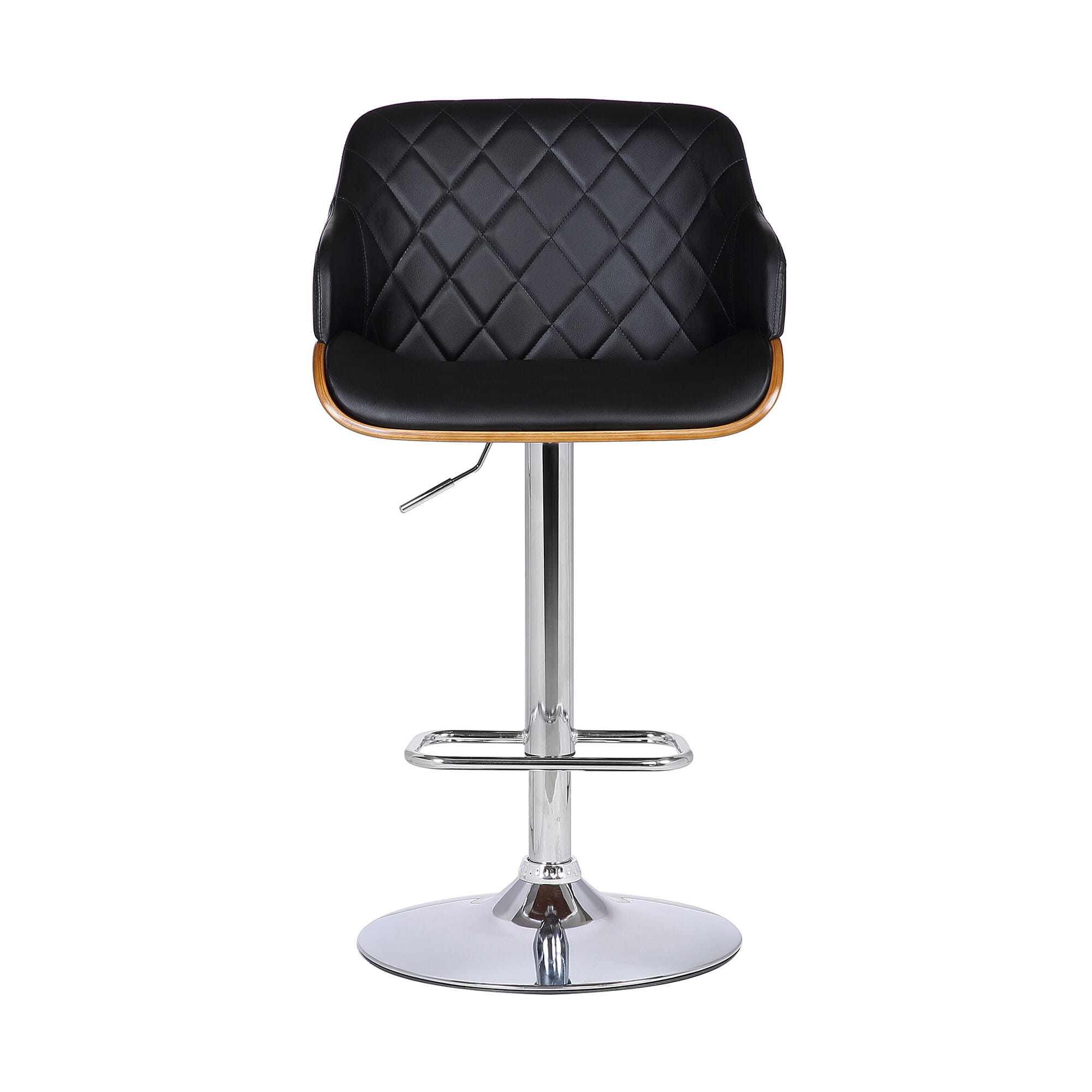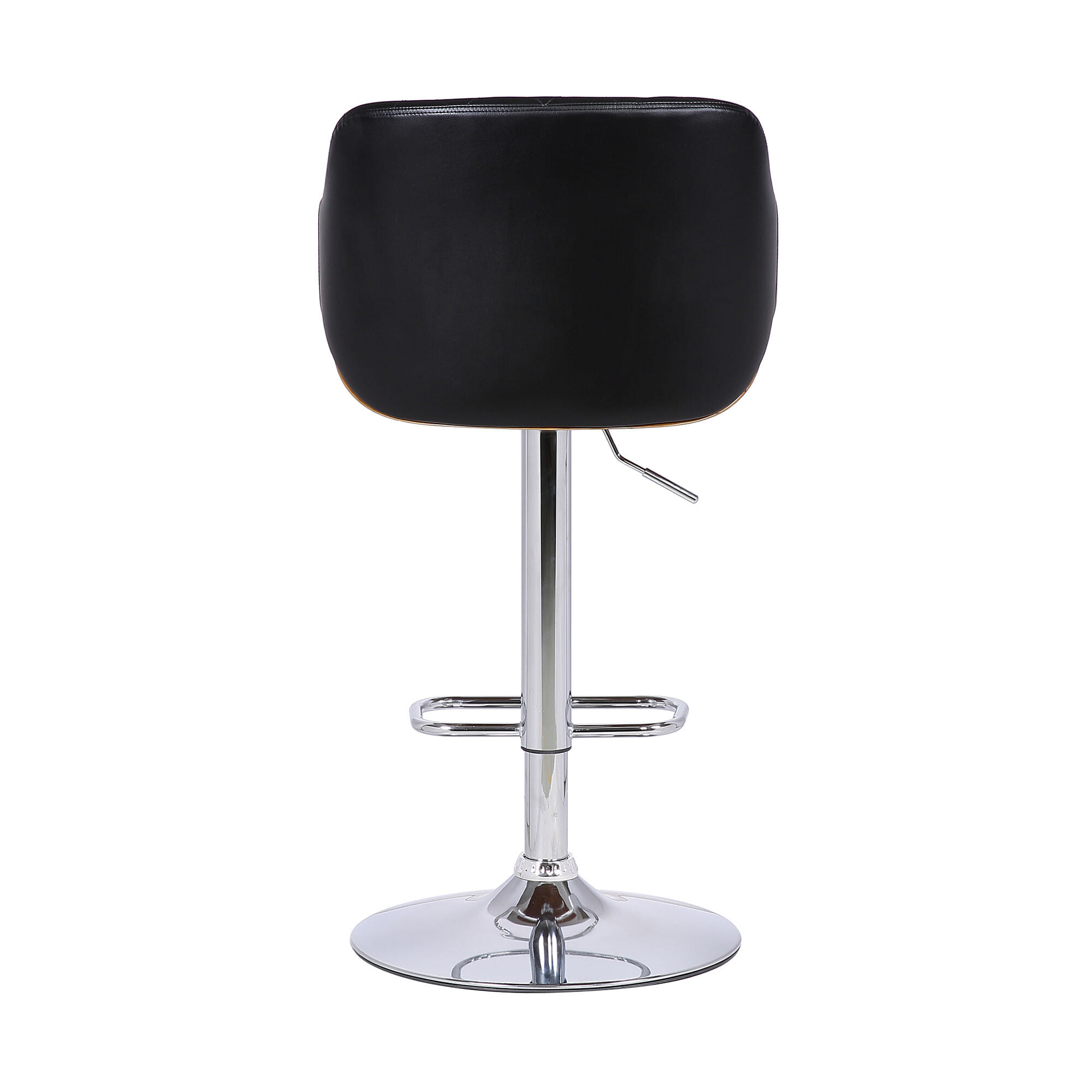 25″ Black And Silver Faux Leather And Iron Swivel Low Back Adjustable Height Bar Chair