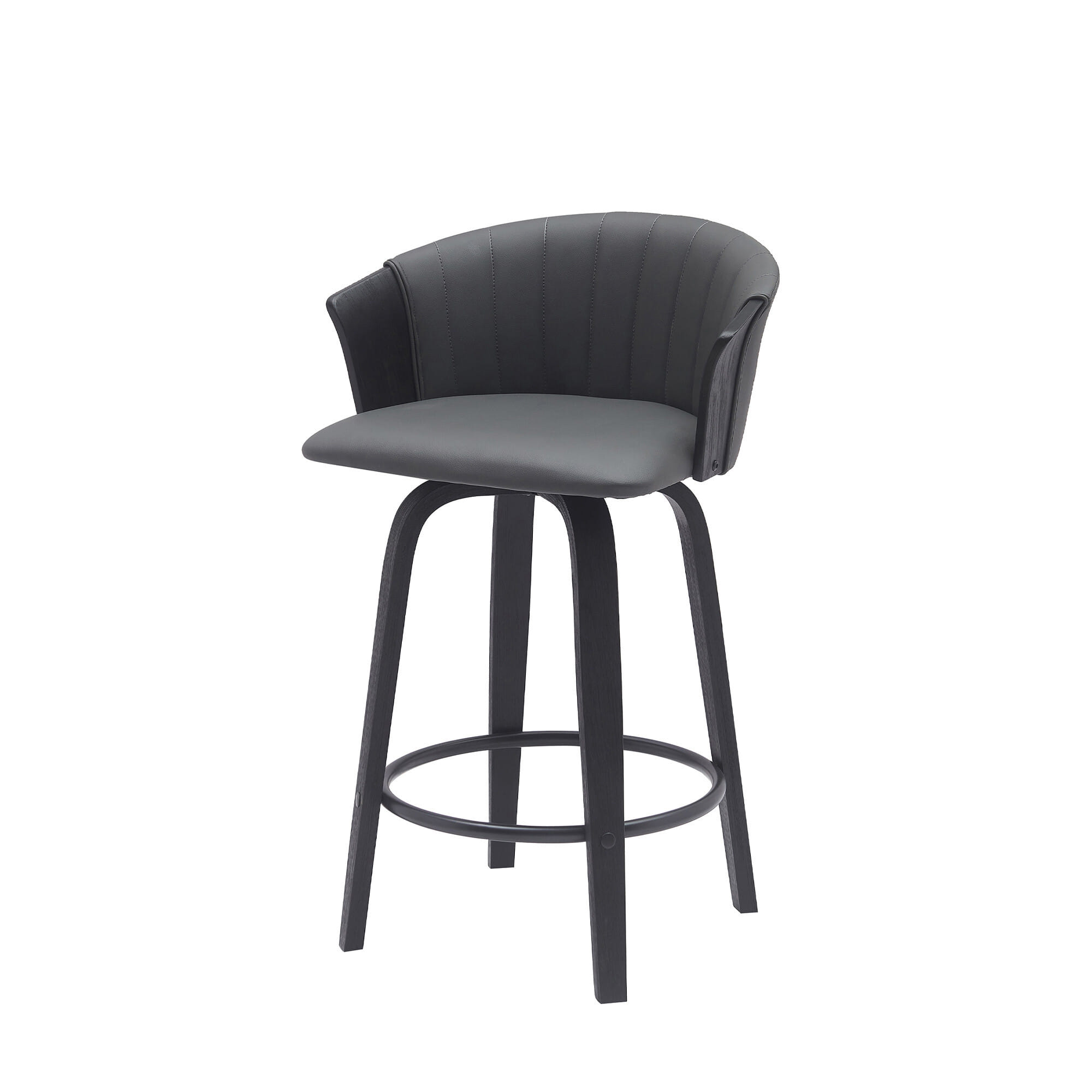 26″ Gray And Black Faux Leather Swivel Counter Height Bar Chair
