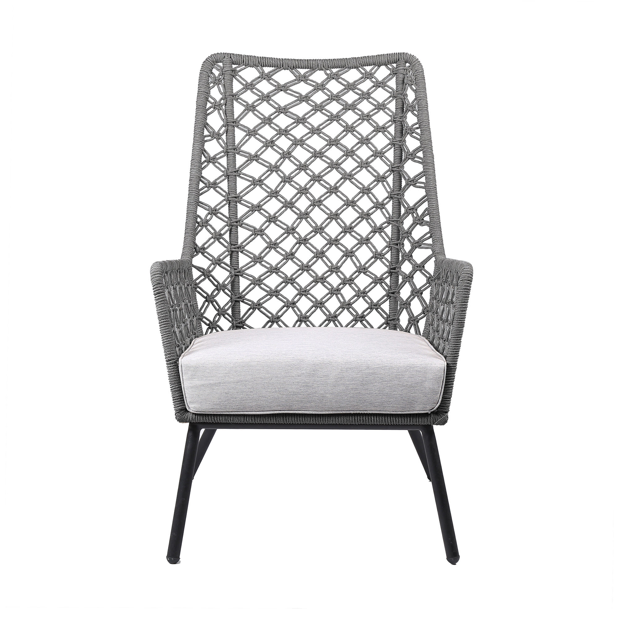 Experience the perfect blend of form and function with the 26-inch gray and black steel indoor outdoor dining chair with gray cushion, designed to withstand the elements while providing exceptional comfort and timeless design. Arms give this chair shape and definition and make it a good looking and comfortable option. Enjoy the good life everyday with this fashionable outdoor seating option. 41-inch H x 26-inch W x 33-inch D