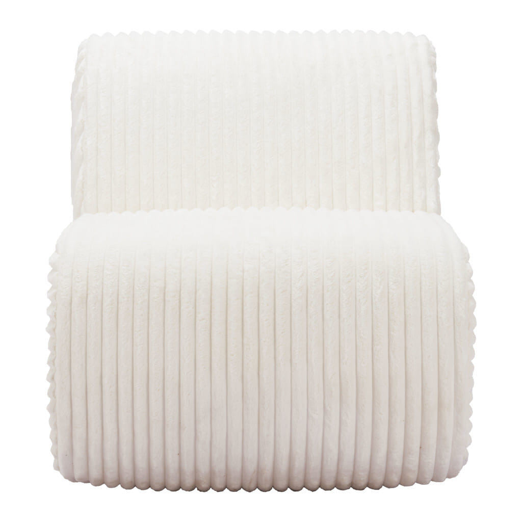 Unique and decorative, this 26-inch white corduroy contemporary shaped lounge chair will leave a lasting impression. Reminiscent of something you would see in the lobby of a boutique hotel or trendy lounge, this gorgeous accent chair is masterfully upholstered in durable polyester wide channel corduroy style fabric. Full of soft and comfortable cushioning and with a super unique design, this accent will be a great modern and contemporary addition to your space. 27.6-inch H x 26.4-inch W x 37-inch D