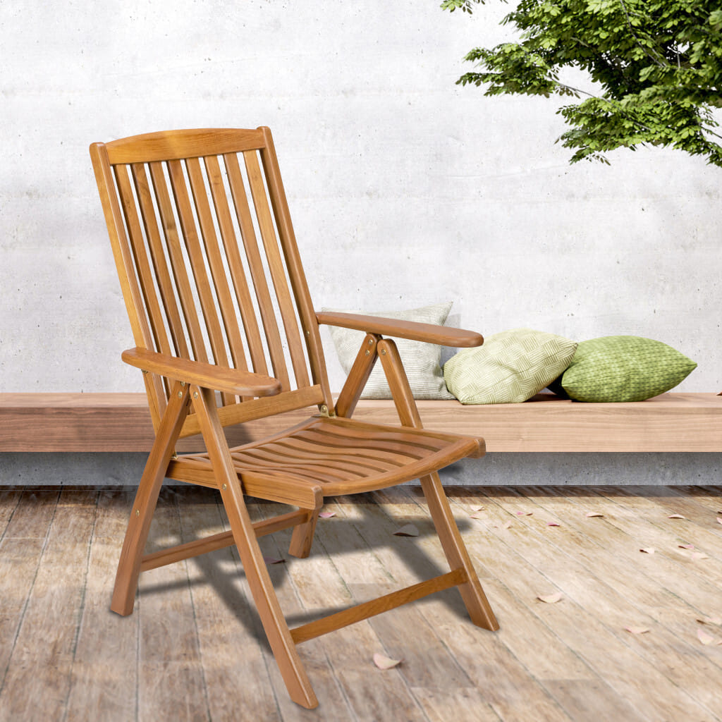 Embrace the ultimate in outdoor comfort with the 27-inch brown solid wood indoor outdoor arm chair, perfect for enjoying leisurely moments and soaking up the sun. Allow the mesmerizing brown color to become a work of art, leaving a lasting impression that beautifully embodies your individuality. The ability to recline in a comfortable position promotes relaxation and helps reduce stress, making this chair a definite must-have. Arms give this chair shape and definition and make it a good looking and comfortable option. When it comes to outdoor furniture, few woods can compare to the exquisite beauty and unmatched durability of genuine teak, making it a coveted choice of hotels, spas, cafes and restaurants. Enjoy the good life everyday with this fashionable outdoor seating option. 44-inch H x 27-inch W x 19.5-inch D
