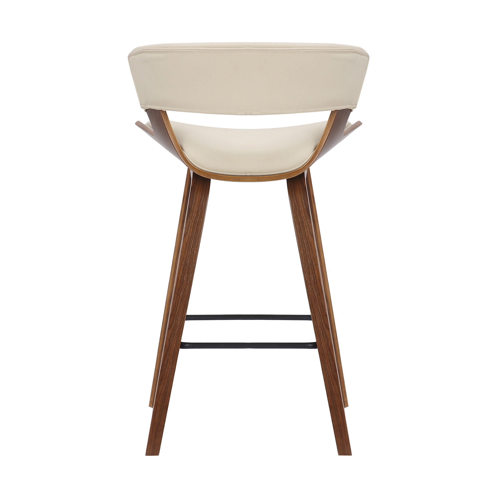 Bring a trendy bar vibe to your space, with this 27-inch cream and brown iron low back counter height bar chair. Quality construction from brown iron combines with cream upholstered to give this stool a fresh and updated look. The round shape of the seat combines with a low back to give this chair a comfortable and fashionable look. Designed with a footrest for comfort and convenience. 36.5-inch H x 21-inch W x 20.5-inch D