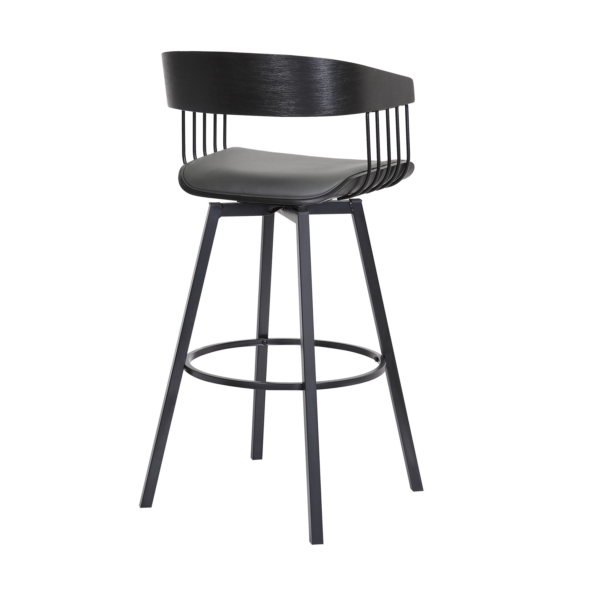 27″ Gray and Black Faux Leather with Metal Swivel Counter Height Bar Chair