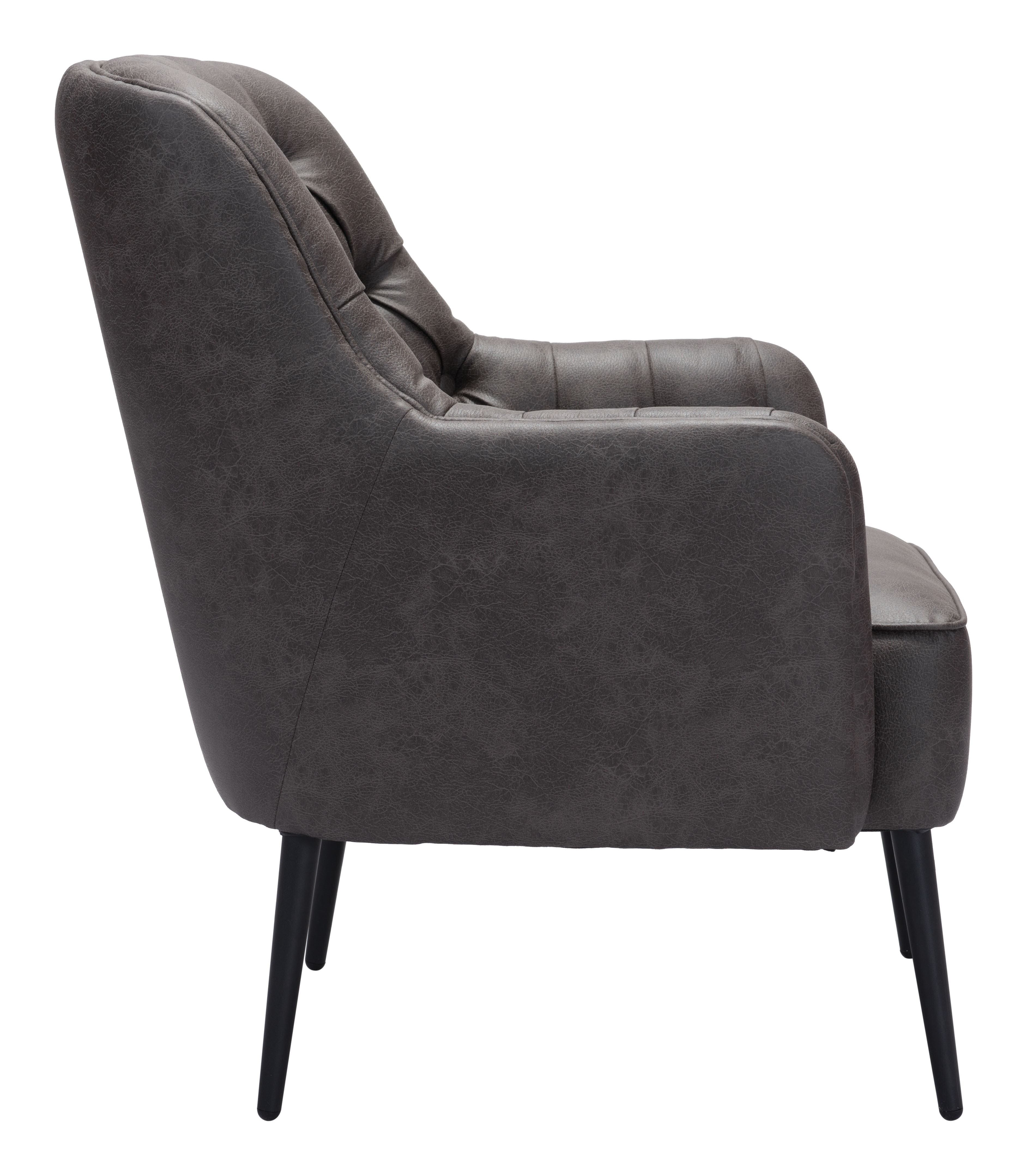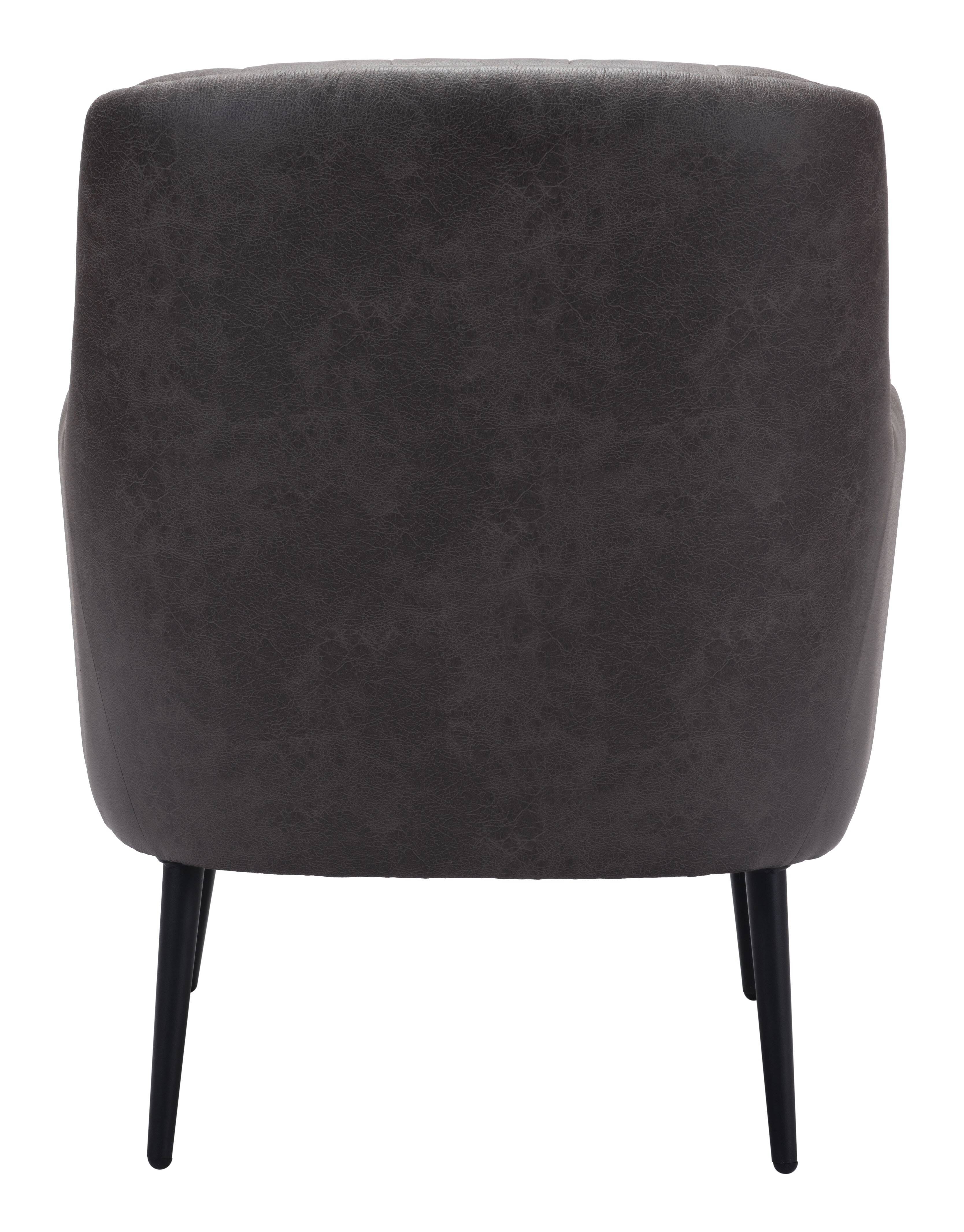 Add an air of fashion to your room and rejuvenate the space with this 29-inch black faux leather tufted arm chair. This sturdy faux leather upholstered arm chair comes in a chic solid black color to give your space just the right look. Giving the chair stability and structure, the inner frame is constructed with high quality manufactured wood, includes comfy armrests, and features a tufted back that comes complete with soft and comfortable cushioning. 35.4-inch H x 29.1-inch W x 31.1-inch D
