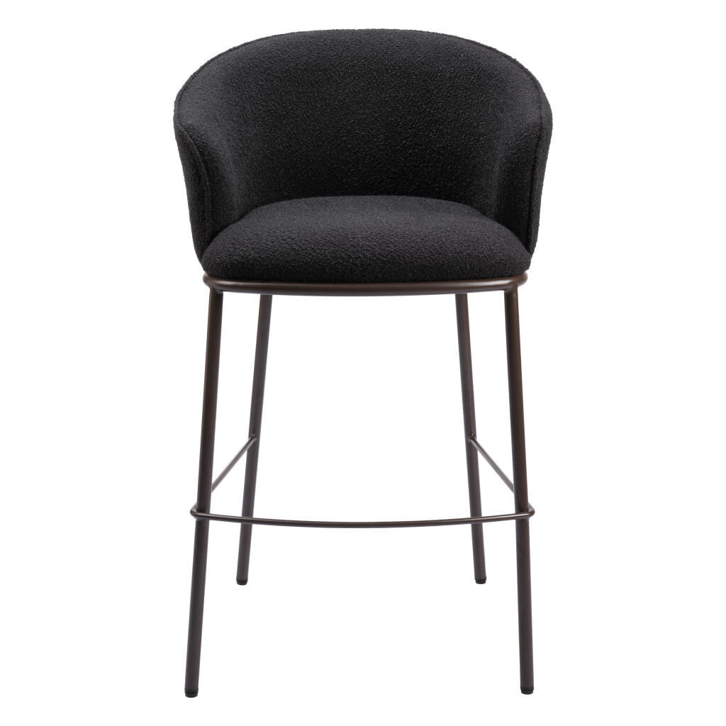 The perfect way to add some extra seating in your home, this 30-inch black and bronze shearling and steel bar height bar chair will elevate the look and vibe of your room. Quality construction from bronze steel combines with black shearling to give this stool a fresh and updated look. A full back mixed with a bucket shaped seat design makes this chair both comfortable and fashionable. Designed with armrests for your comfort, this chair also features a footrest for comfort and convenience. 40.9-inch H x 24.4-inch W x 24.4-inch D