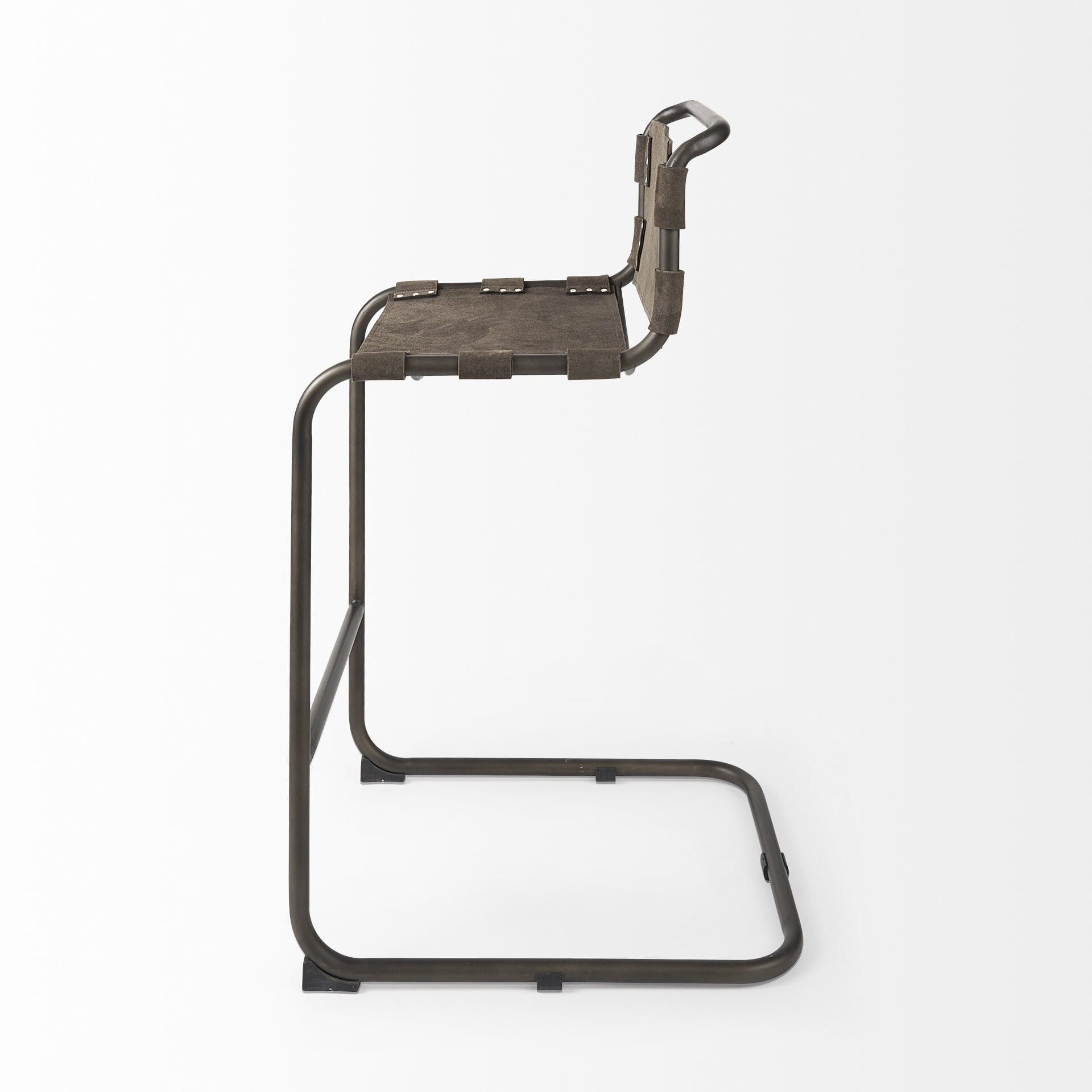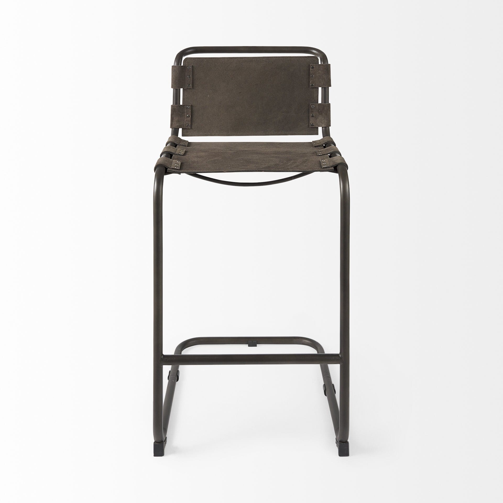 30″ Brown And Black Leather And Iron Bar Chair