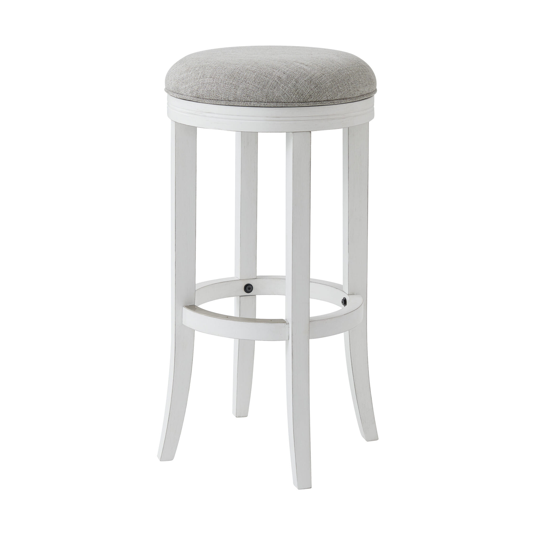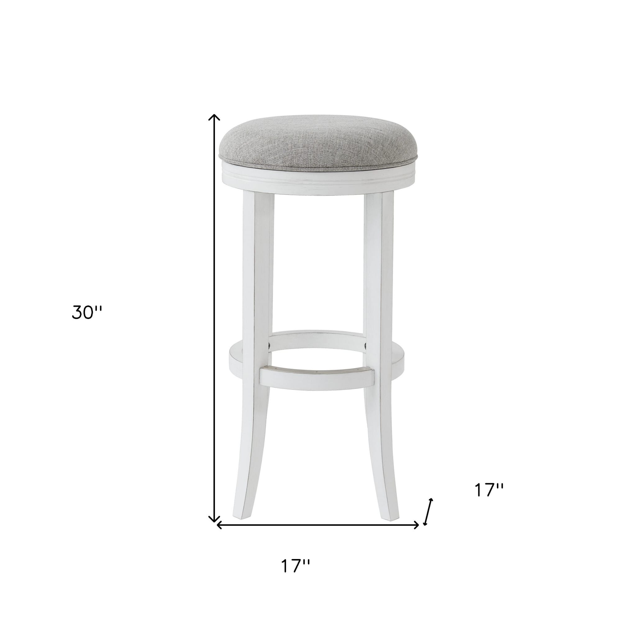 This 30-inch gray and antiqued white solid wood swivel backless bar height bar chair will be the perfect way to add some cool design and utility to your space similar to what you find in your favorite cafes or pubs. The round shape of the seat give this backless chair a fresh and fashionable look. Designed with a footrest for comfort and convenience. 30-inch H x 17-inch W x 17-inch D