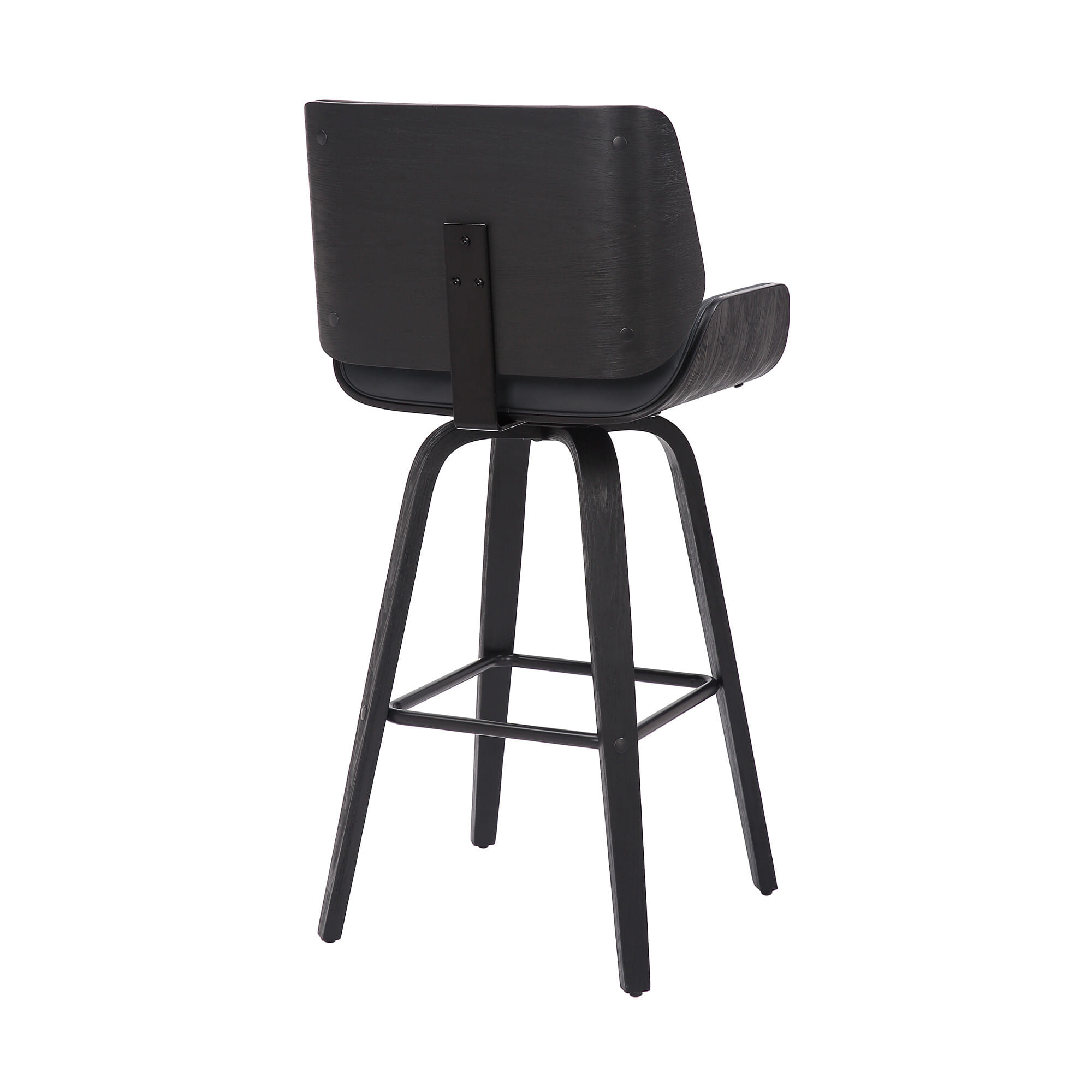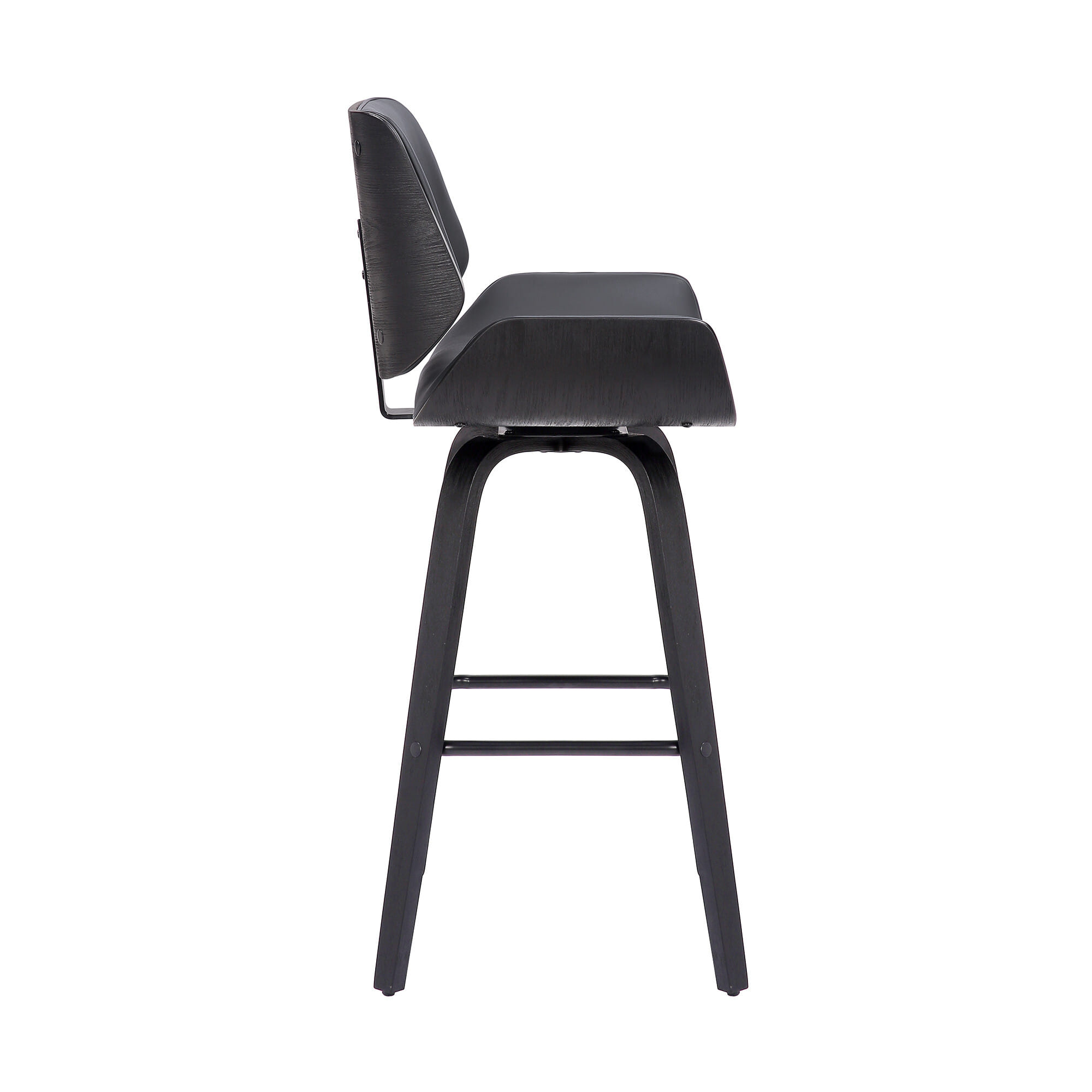 The perfect way to add some extra seating in your home, this 30-inch gray and black faux leather and iron swivel bar height bar chair will elevate the look and vibe of your room. Quality construction from black iron combines with gray faux leather to give this stool a fresh and updated look. The curved edge seat combines with a full back to give this chair a comfortable and fashionable look. This stool will look great in your dining room, kitchen, bar, or recreation room. 42-inch H x 20-inch W x 20-inch D
