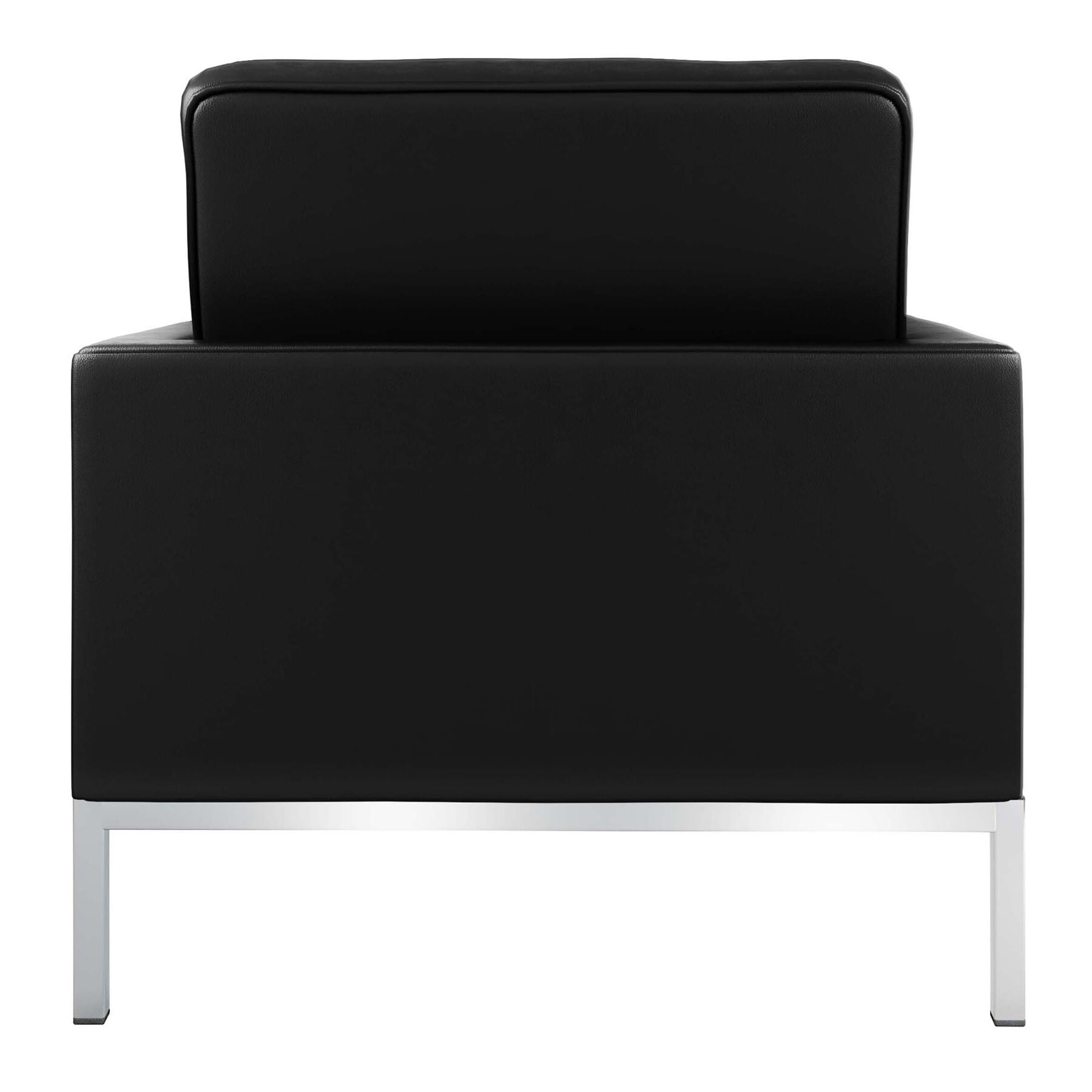 Add an air of fashion to your room and rejuvenate the space with this 31-inch black and silver italian leather tufted arm chair. This sturdy italian leather upholstered arm chair comes in a chic solid black color to give your space just the right look. Giving the chair stability and structure, the inner frame is constructed with high quality stainless steel, includes comfy armrests, and features a cushion back that comes complete with soft and comfortable cushioning. The tufted cushions add fine designer detailing. 30.5-inch H x 30.5-inch W x 30.5-inch D