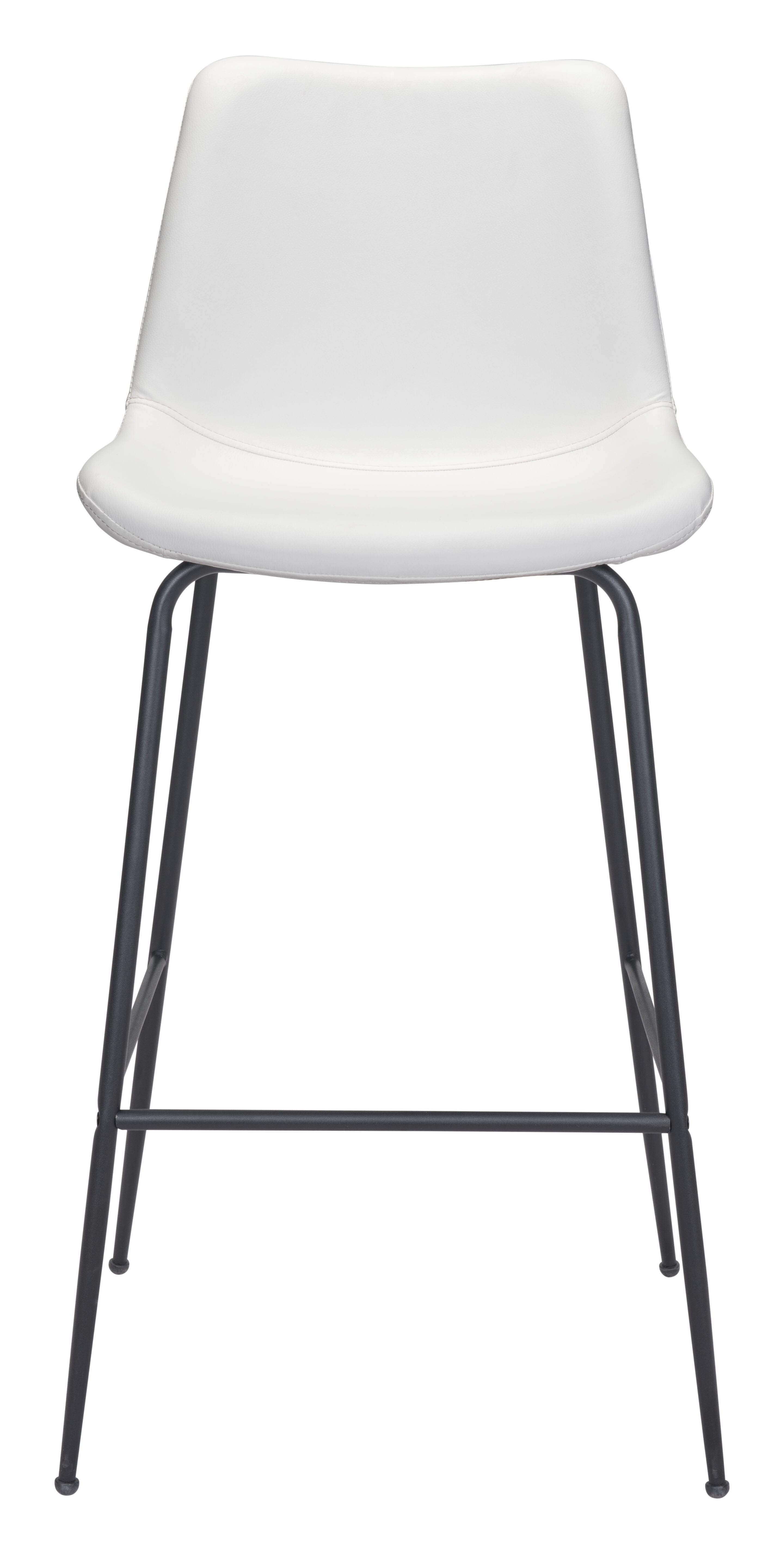 With this 31-inch white and black steel low back bar height bar chair you can add design and extra seating to your space. A black steel frame is finished off with a white upholstered seat that is the epitome of quality construction and design. A low back mixed with a bucket shaped seat design makes this chair both comfortable and fashionable. Designed with a footrest for comfort and convenience. 43.1-inch H x 20.9-inch W x 22.2-inch D