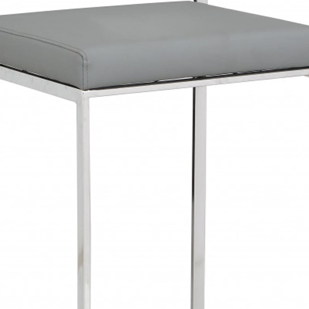 This 35″ gray faux leather and steel low back bar height chair with footrest will be the perfect way to add some cool design and utility to your space similar to what you find in your favorite cafes or pubs. The base of this stool is made from steel in a chrome color that is a nice contrast to the gray faux leather seat. The bucket shape of the seat combines with a low back to give this chair a comfortable and fashionable look. Designed with a footrest for comfort and convenience. 34.75″ H x 19.125″ W x 18″ D
