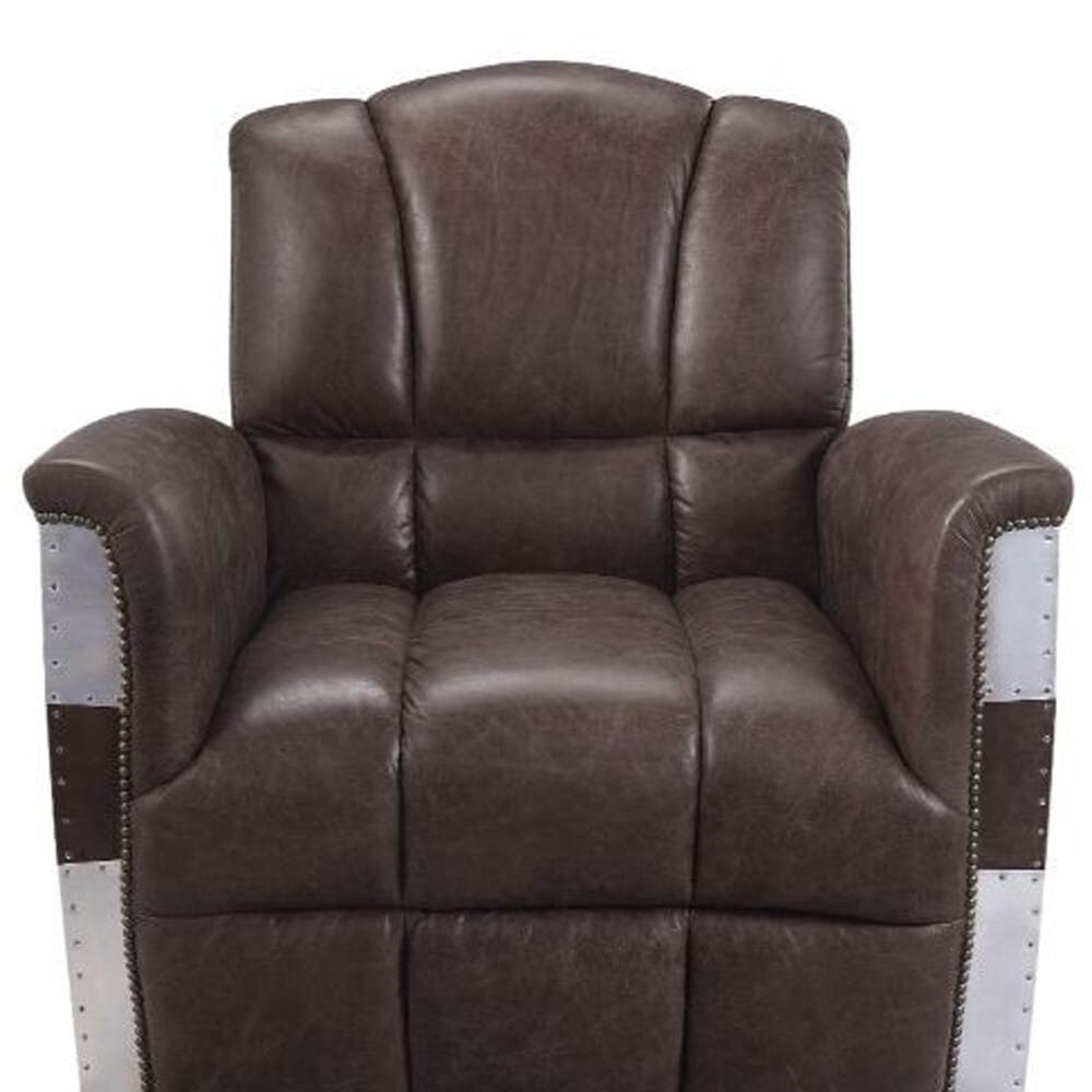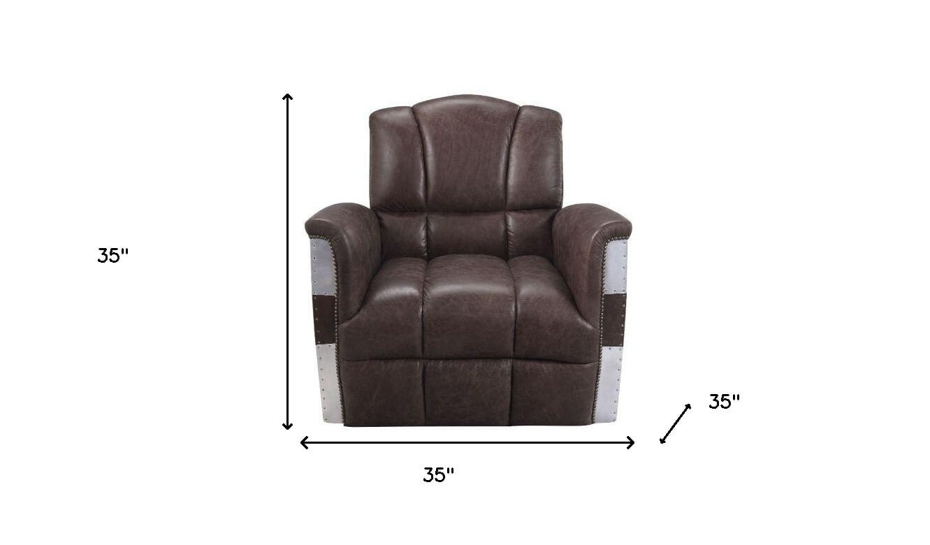 This 35″ retro brown top grain leather and steel patchwork club chair is the perfect decorative yet functional accessory for your home. Built to last this club chair is upholstered in a beautiful retro brown patchwork patterned top grain leather to give your room a gorgeous and classic update. The high quality manufactured wood inner frame flaunts convenient armrests and a tufted back that are complimented by soft and comfortable cushioning. 35″ H x 35″ W x 35″ D