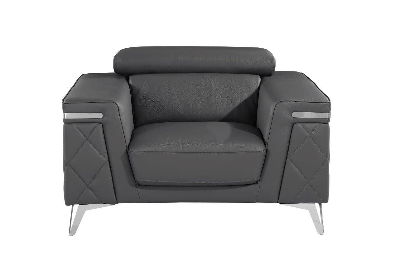 This 42-inch gray and silver metallic top grain leather club chair is the perfect decorative yet functional accessory for your home. This sturdy top grain leather upholstered club chair comes in a chic solid gray color to give your space just the right look. The high quality solid wood inner frame flaunts convenient armrests and a tight back that are complimented by soft and comfortable cushioning. 38-inch H x 42-inch W x 42-inch D