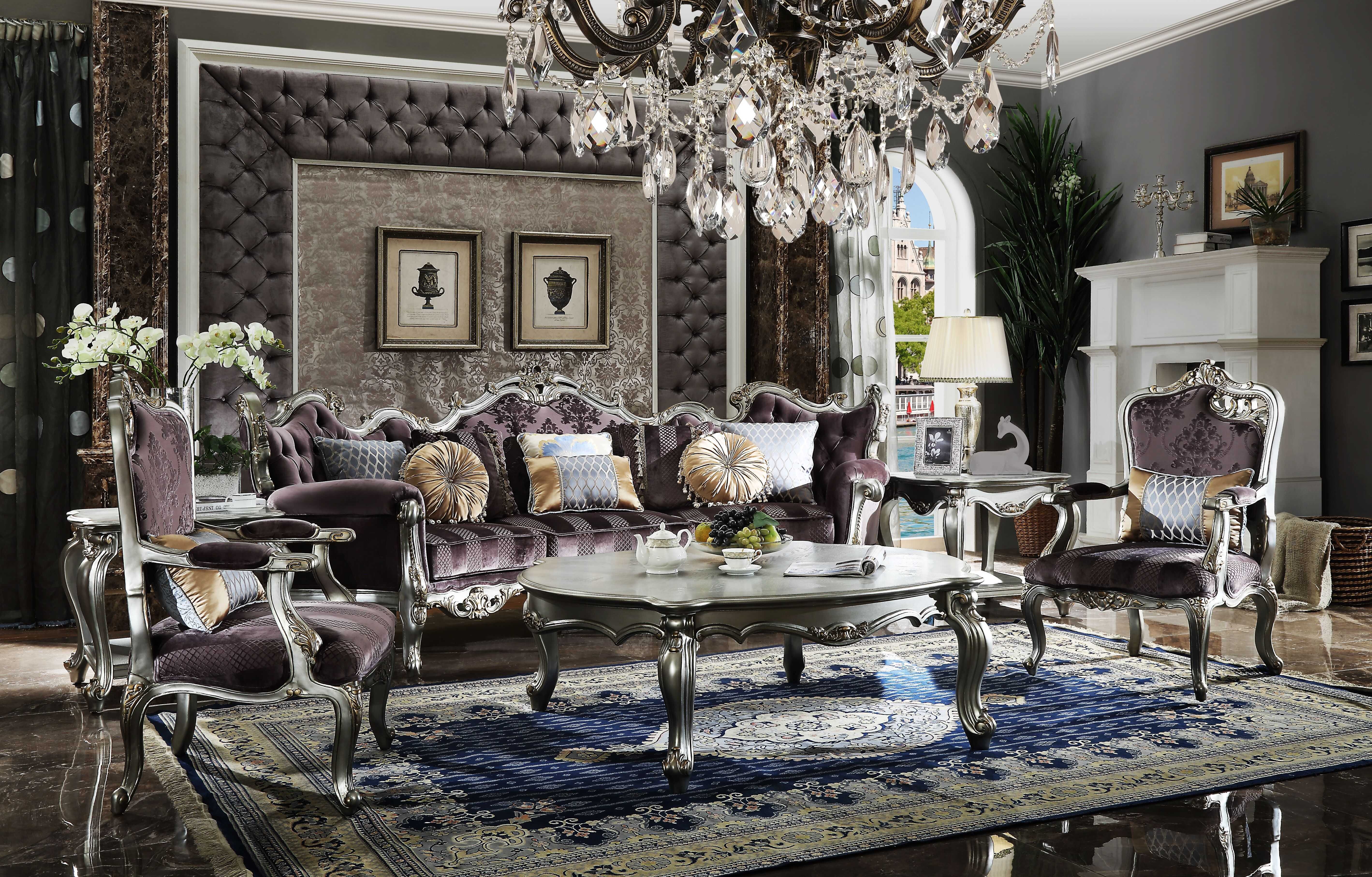 Add an air of fashion to your space with this fabulous 52-inch dark purple velvet curved striped sofa and toss pillows with platinum legs. This striped curved is made from sturdy and resilient velvet that has a warm and rich look and is a super soft and comfortable to the touch. Built to last, this sofa will be a great centerpiece for your room. 46-inch H x 52-inch W x 113-inch D