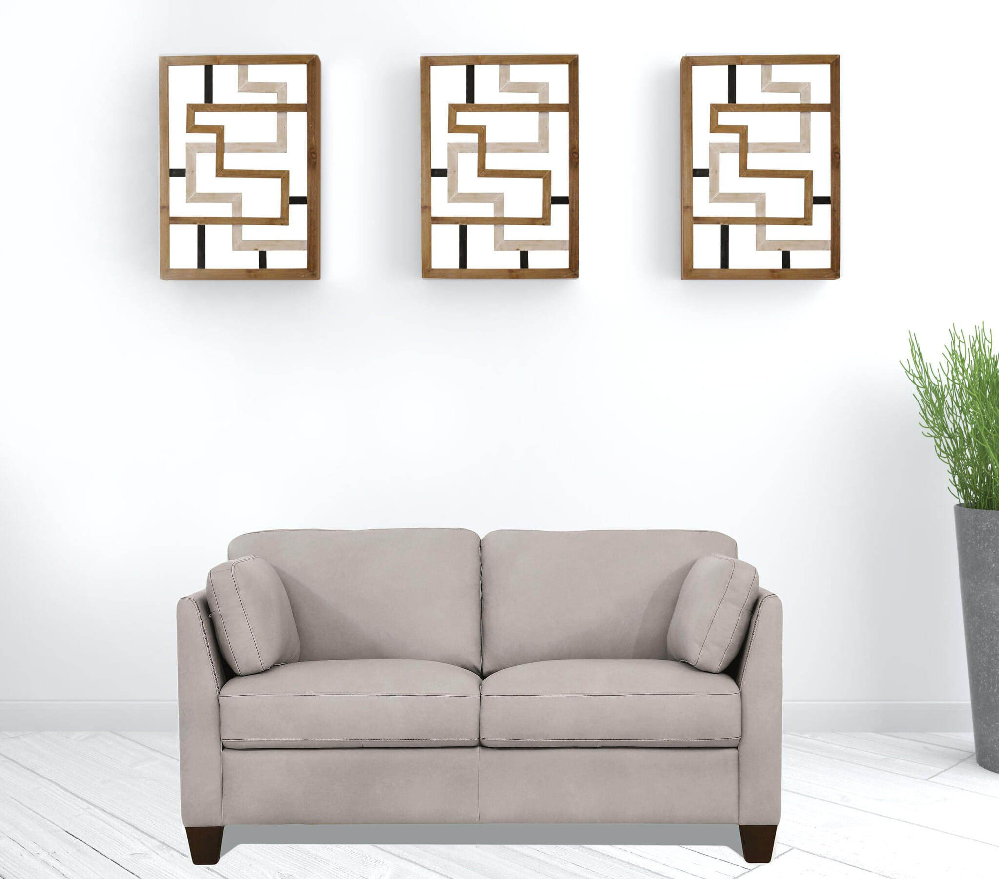 An interior designer’s dream, this buttery soft high grade leather 59-inch dusty white and brown leather loveseat will bring just the right touch to your space. The high grade premium leather used makes your lounging luxuriously comfortable and adds an elegant appeal to your space. Square arms offer a comfy place to rest and give this piece some interest and shape. A great showpiece for your room, this sofa is a must have. 31-inch H x 59-inch W x 34-inch D