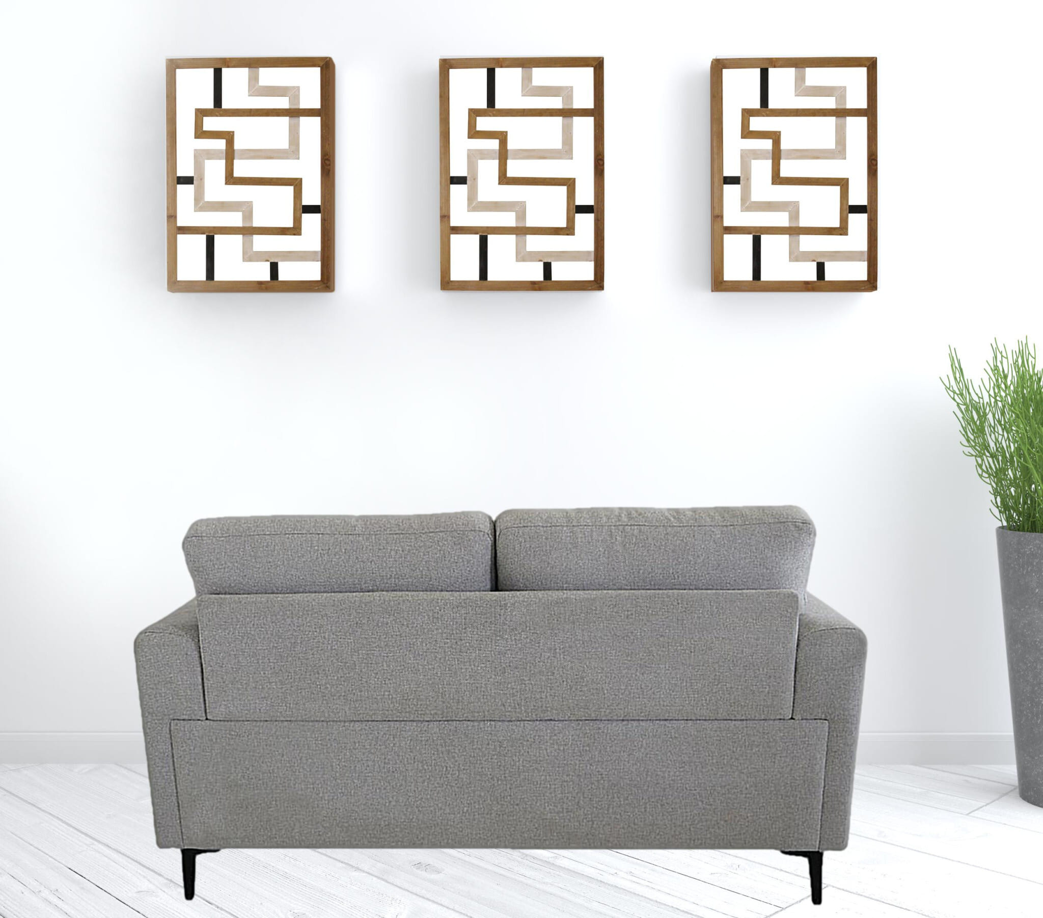 Transform your living space with this luxurious 61-inch light gray and black linen loveseat featuring square arms for added comfort and style. The solid and manufactured wood legs in black complement the overall sleek design, making it a great focal point in any room. With a cushion back and solid color upholstery, this loveseat is both stylish and practical for everyday use. Crafted with a manufactured wood frame, this piece is a must-have addition to your home decor collection. 35-inch H x 61-inch W x 35-inch D