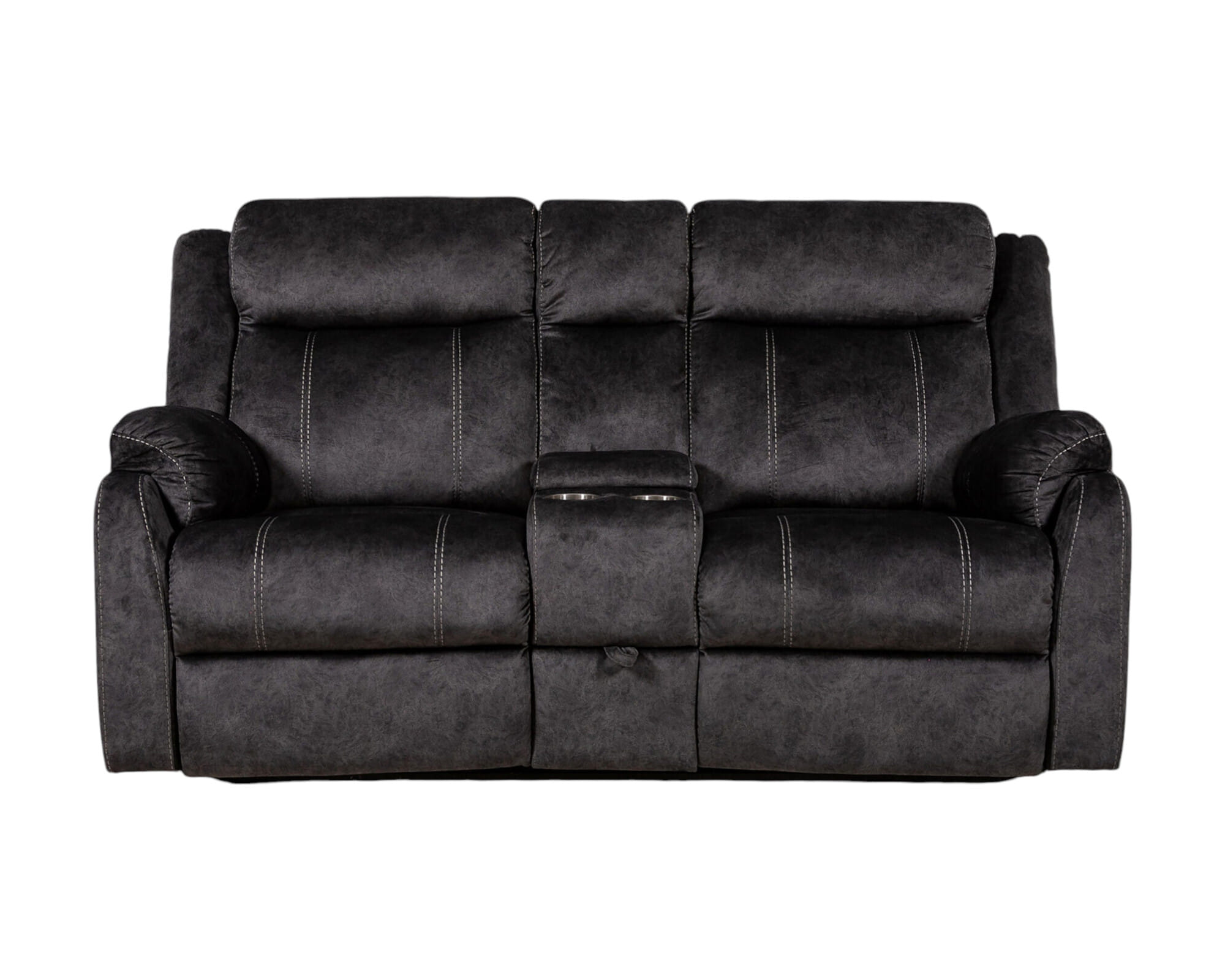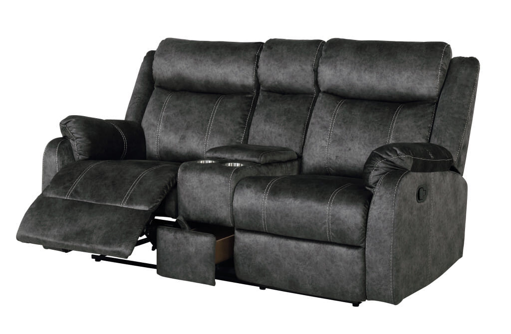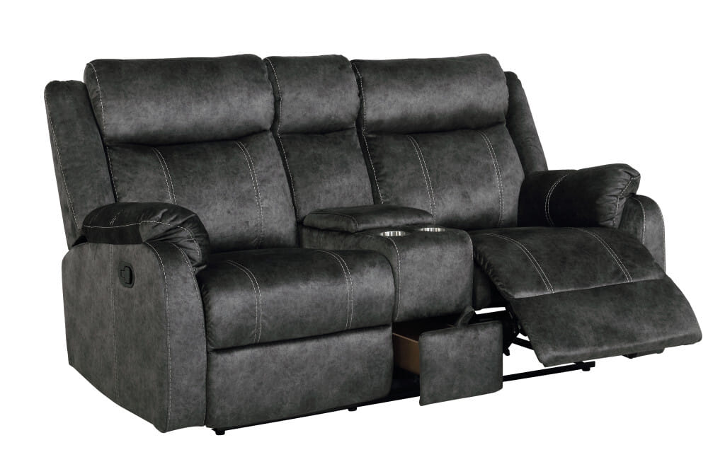 Add an air of fashion to your space with this fabulous 70-inch dark gray microfiber manual reclining loveseat with storage. Pillow top arms offer a comfy place to rest and give this piece some interest and shape. A great showpiece for your room, this sofa is a must have. 40.94-inch H x 70.07-inch W x 37.01-inch D