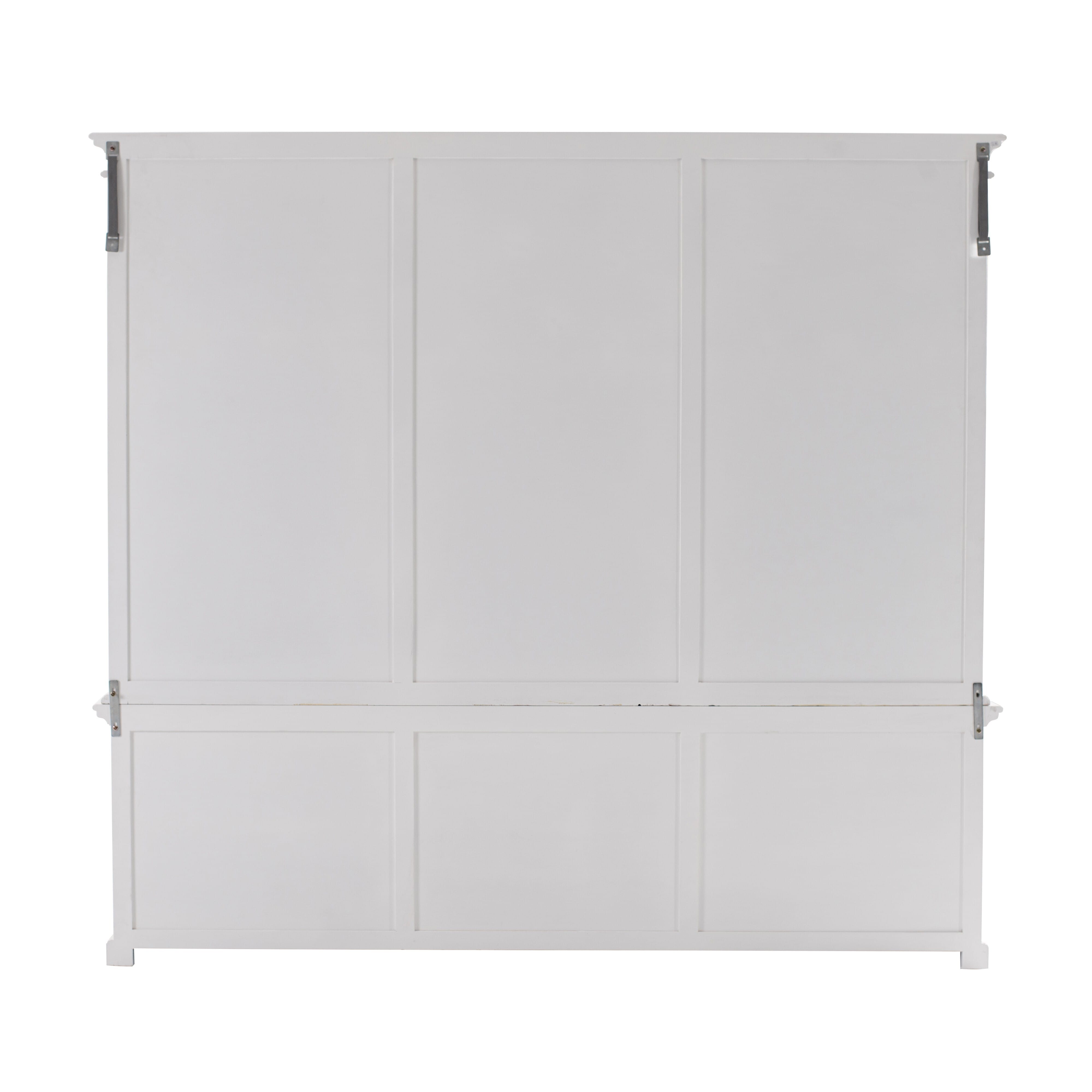 Organize your dinnerware, serveware, and drinkware with this great looking 71-inch white solid wood frame dining hutch with multiple shelves and three drawers. Equipped with 3 easy open drawers and storage cabinet for practical and good looking storage. This beautiful accent is built to last from high quality solid wood, storage vessels don’t have to be unsightly. Increase your storage space and the fashion quotient of your room with this hard wearing, versatile, and good looking cabinet. 86.61-inch H x 71-inch W x 19.69-inch D