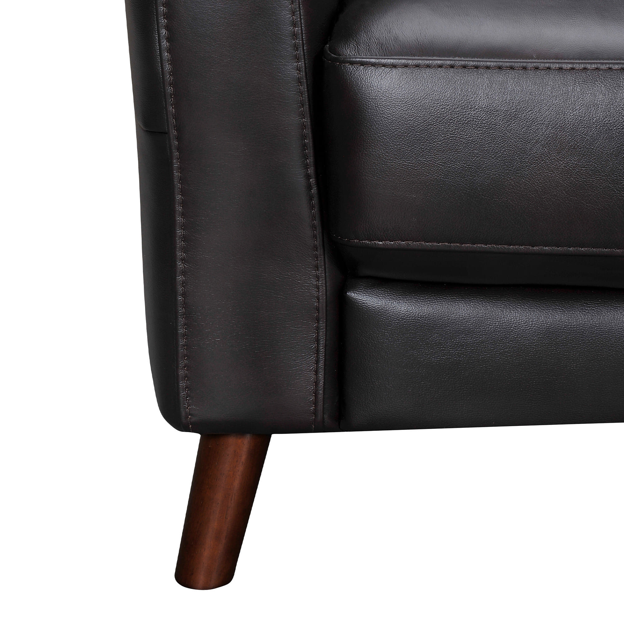 An interior designer’s dream, this buttery soft high grade leather 82-inch black leather sofa with brown legs will bring just the right touch to your space. The premium leather used makes your lounging luxuriously comfortable and adds an elegant appeal to your space. Solid colors give you lots of decorative options and are easy to work into your decor scheme. Web suspension construction gives this piece strong support and makes it comfortable to sit even for long periods of time. Square arms offer a comfy place to rest. The tufted stitching pattern adds visual interest and fine designer detailing. A great showpiece for your room, this sofa is a must have. 35-inch H x 82-inch W x 37-inch D