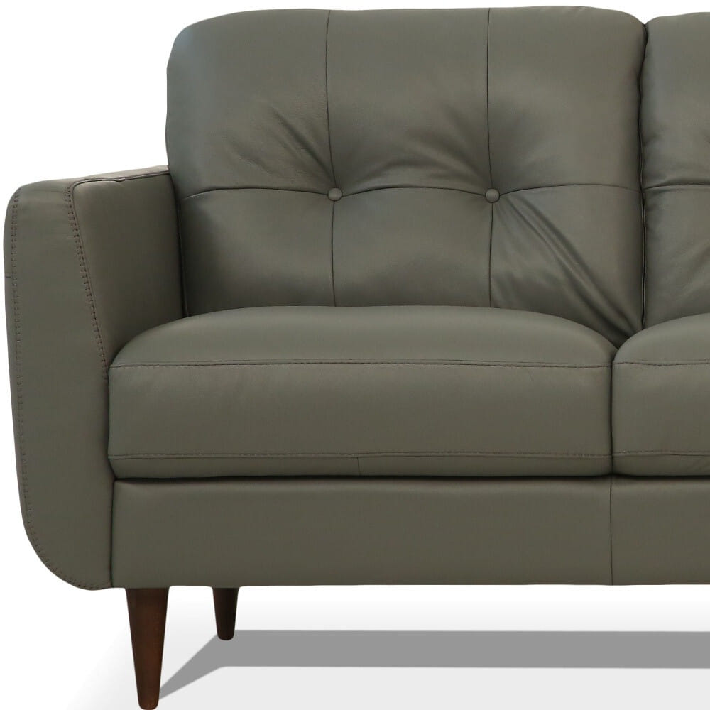 An interior designer’s dream, this buttery soft high grade leather 83-inch green leather sofa with black legs will bring just the right touch to your space. The premium leather used makes your lounging luxuriously comfortable and adds an elegant appeal to your space. Solid colors give you lots of decorative options and are easy to work into your decor scheme. Sinuous springs construction gives this piece strong support and makes it comfortable to sit even for long periods of time. Square arms offer a comfy place to rest. The tufted stitching pattern adds visual interest and fine designer detailing. Built to last, this sofa will be a great centerpiece for your room. 36-inch H x 83-inch W x 37-inch D