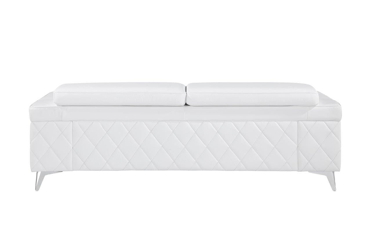Made of the highest quality, supple leather, this 89-inch white italian leather sofa with silver legs will be the star of your space. The high grade premium leather used makes your lounging luxuriously comfortable and adds an elegant appeal to your space. Solid colors give you lots of decorative options and are easy to work into your decor scheme. Sinuous springs construction gives this piece strong support and makes it comfortable to sit even for long periods of time. Square arms offer a comfy place to rest. Silver stainless steel legs effortlessly elevate the room and add a touch of contemporary design. A great showpiece for your room, this sofa is a must have. 42-inch H x 89-inch W x 38-inch D