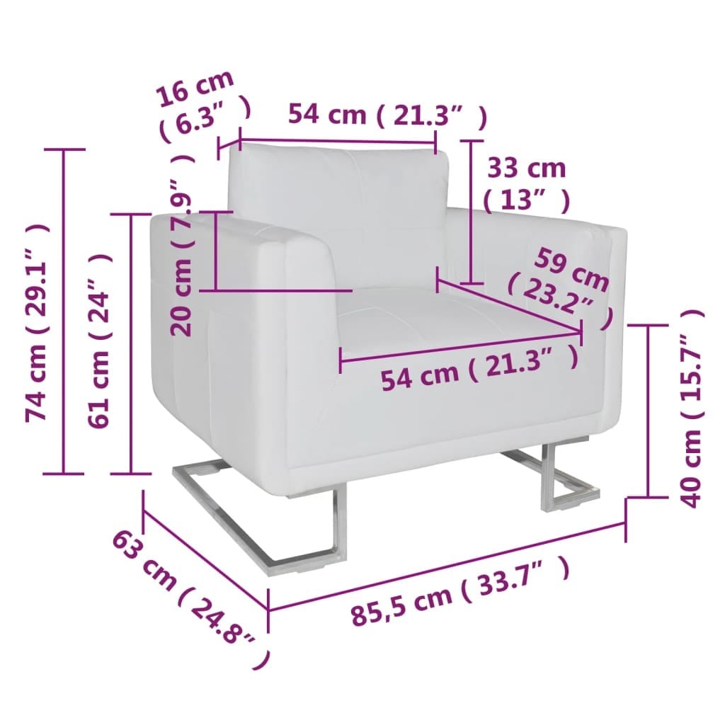This modern white leather cube armchair blends style and comfort effortlessly in any space. Its chic look and smooth feel create a cozy vibe, making it a perfect addition to contemporary homes or offices. Imagine this stylish piece brightening up your reading corner or adding a touch of warmth to your living room, all while providing a comfy spot to chill.