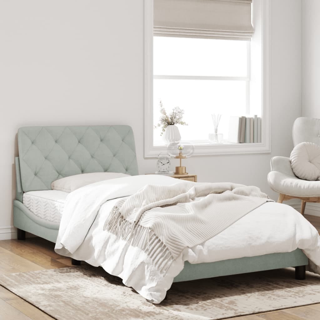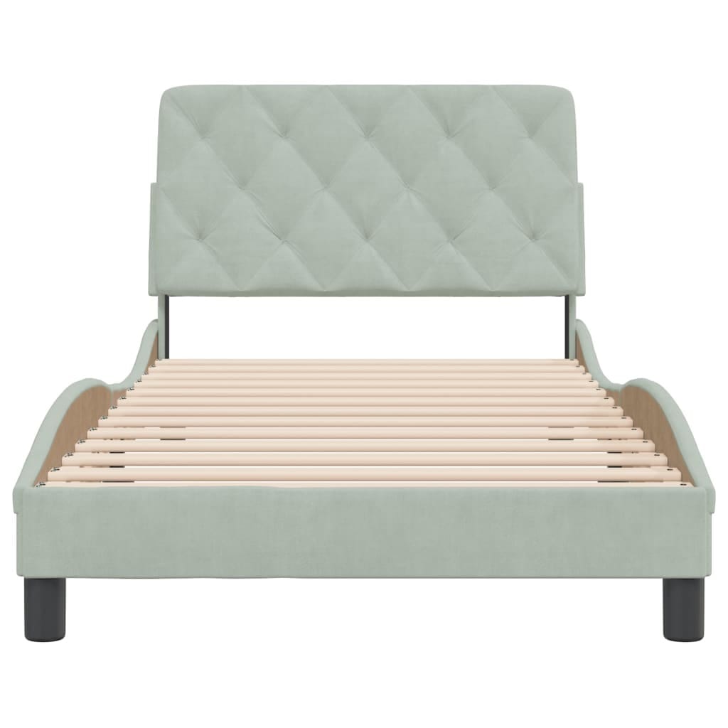 Bed Frame without Mattress Light Gray 39.4″x79.9″ Velvet