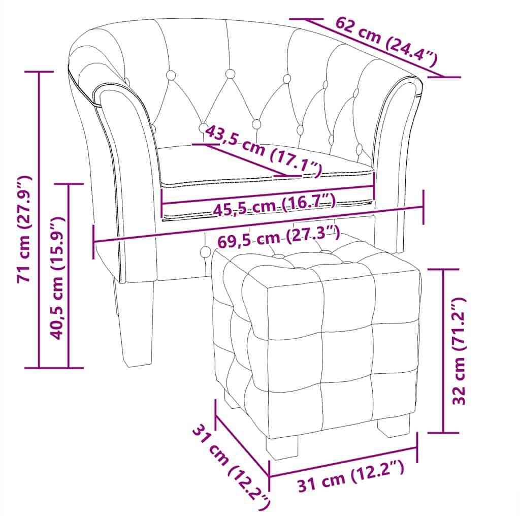 This fancy gold tub chair, along with its matching footstool, makes for a comfy and stylish spot in your home or office. The rich gold faux leather finish brings a touch of luxury and ensures a comfy experience, perfect for chilling or hosting guests in all sorts of settings.