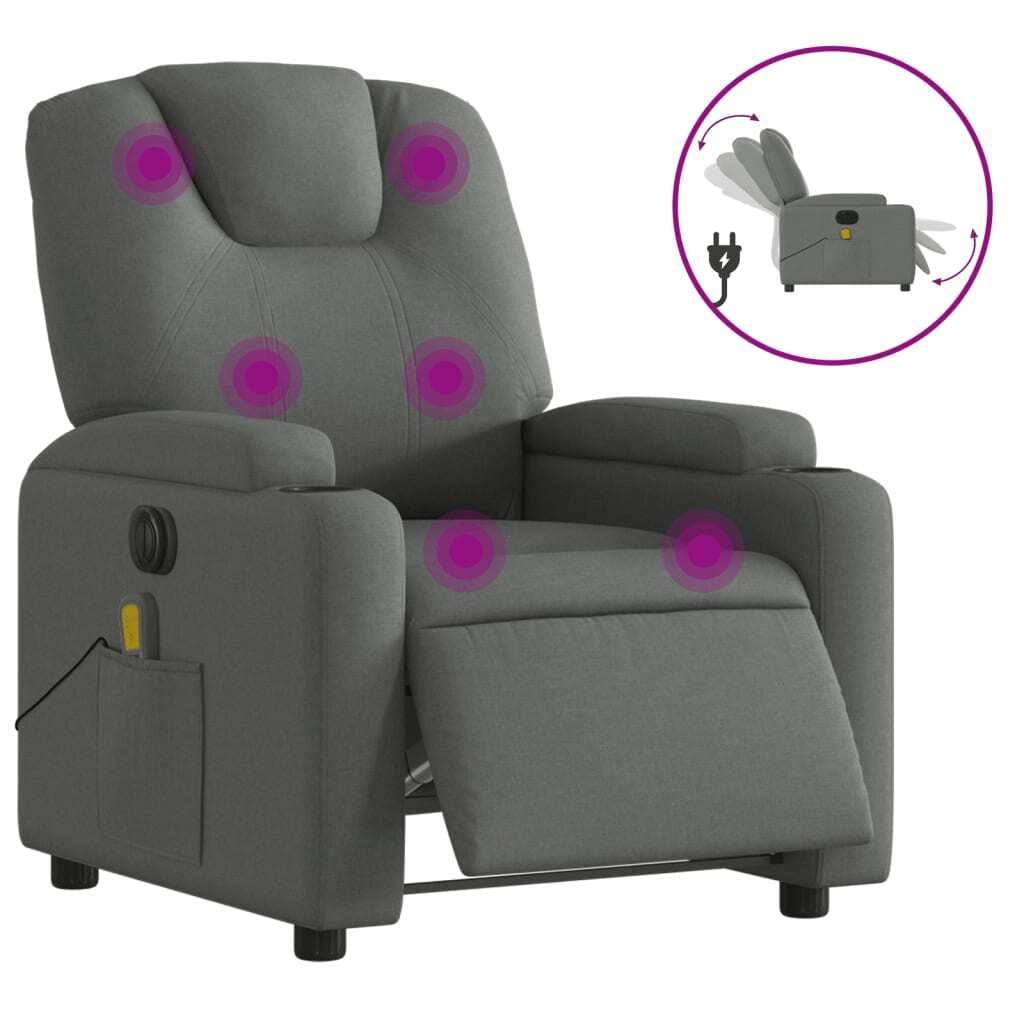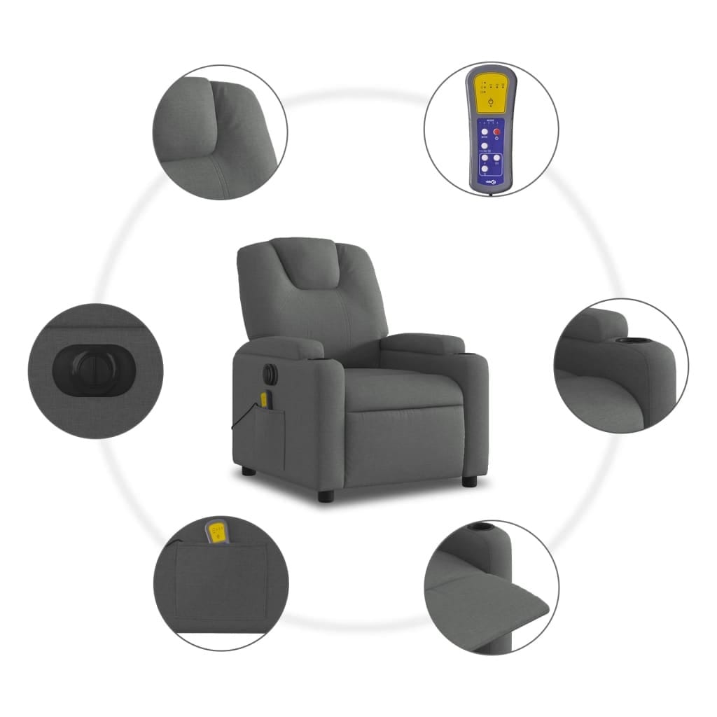 This Electric Massage Recliner Chair brings modern elegance and functionality, just right for those wanting to relax at home or in the office. Covered in dark gray fabric, this chair not only brightens up your room’s look but also gives you a comfy spot for movies, reading, or just kicking back after a long day.
