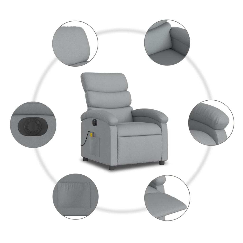 This Electric Massage Recliner Chair combines the functionality of a recliner with a lovely massage experience, made to give you some proper relaxation and support. The light gray fabric fits in nicely with modern living spaces, perfect for unwinding after a long hard day.