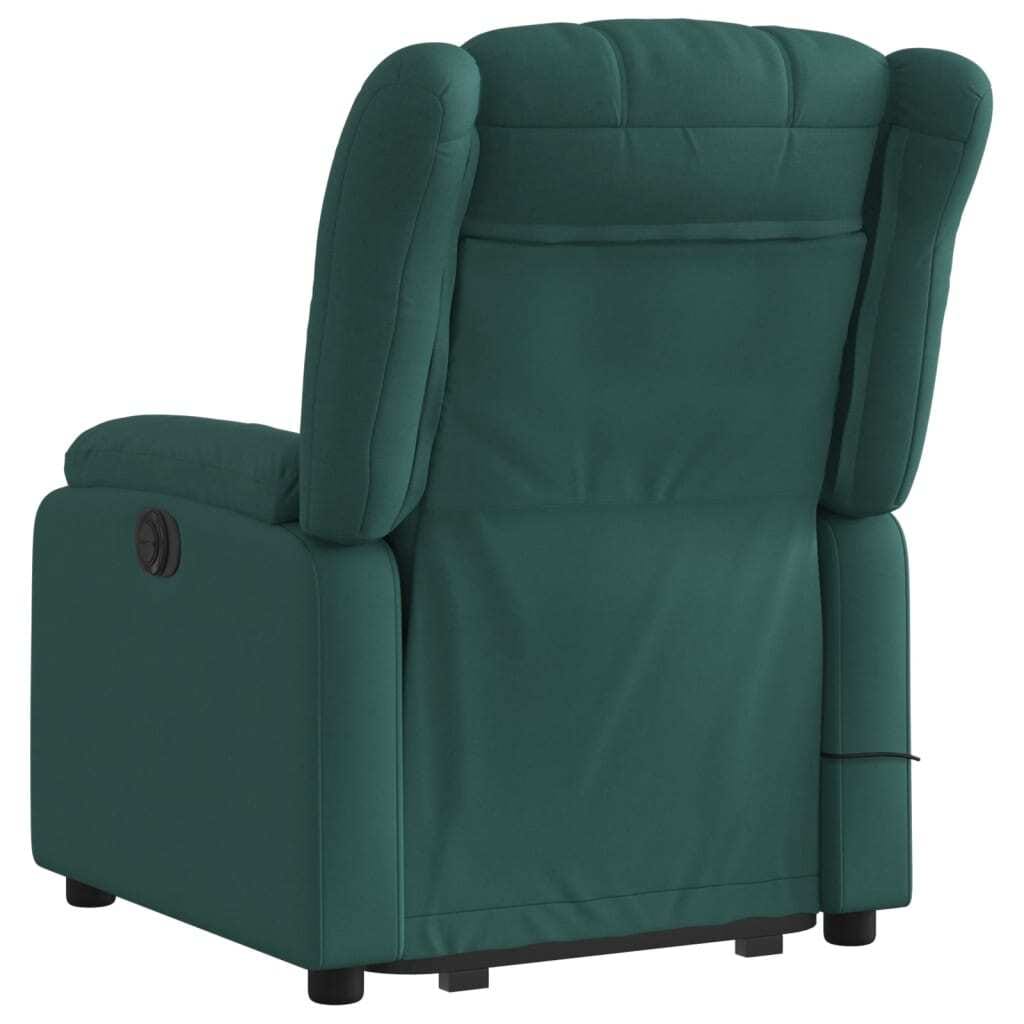 This Electric Stand Up Massage Recliner Chair combines comfort and functionality in an elegant design, allowing you to unwind effortlessly. With its dark green fabric upholstery and modern structure, this chair not only serves as a relaxing haven for anyone in need of comfort but also adds a pop of style to your living space.