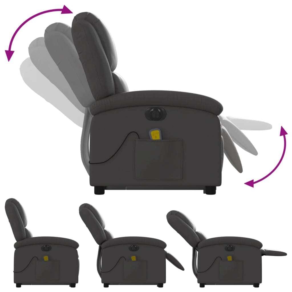 This Electric Stand Up Massage Recliner Chair offers a unique blend of comfort and functionality tailored for relaxation. With its chic gray leather upholstery and modern lines, it seamlessly fits into any living room or home theater setup, providing not just a seating solution but an experience tailor-made for unwinding after a long day or enjoying a movie marathon.