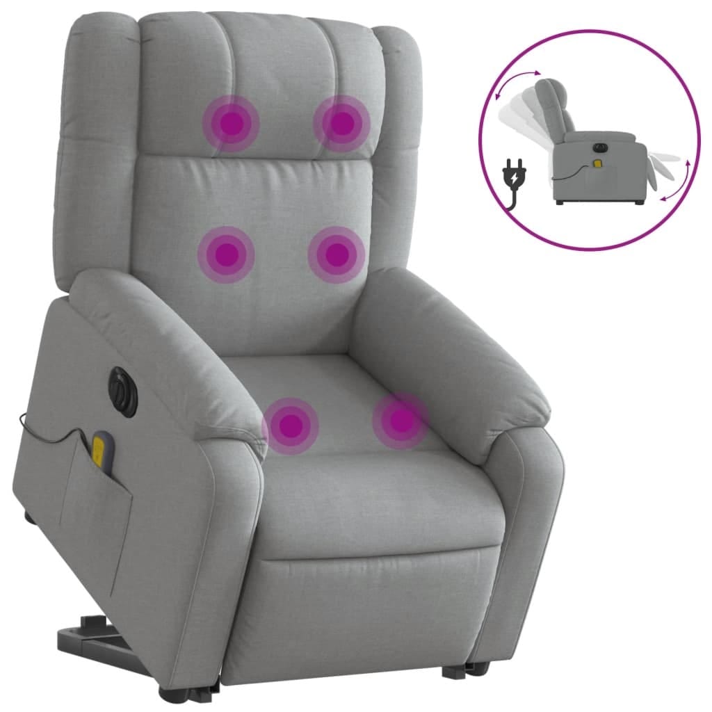 This Electric Stand Up Massage Recliner Chair brings together modern looks and comfy convenience. Its sleek light grey fabric design is spot on for any living room or home theater, giving you not just a seat but an experience where relaxation meets usefulness.