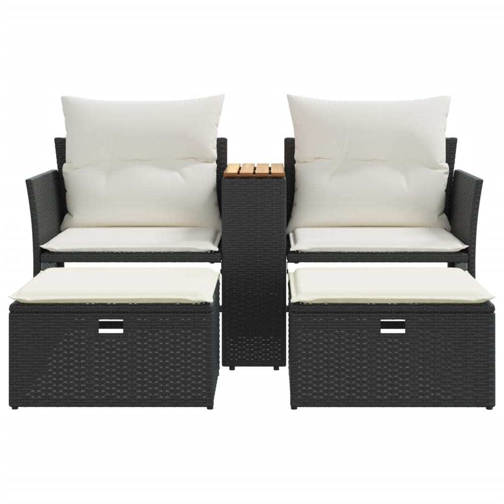 Garden Sofa Black PE Rattan Standard Adjustable Feet