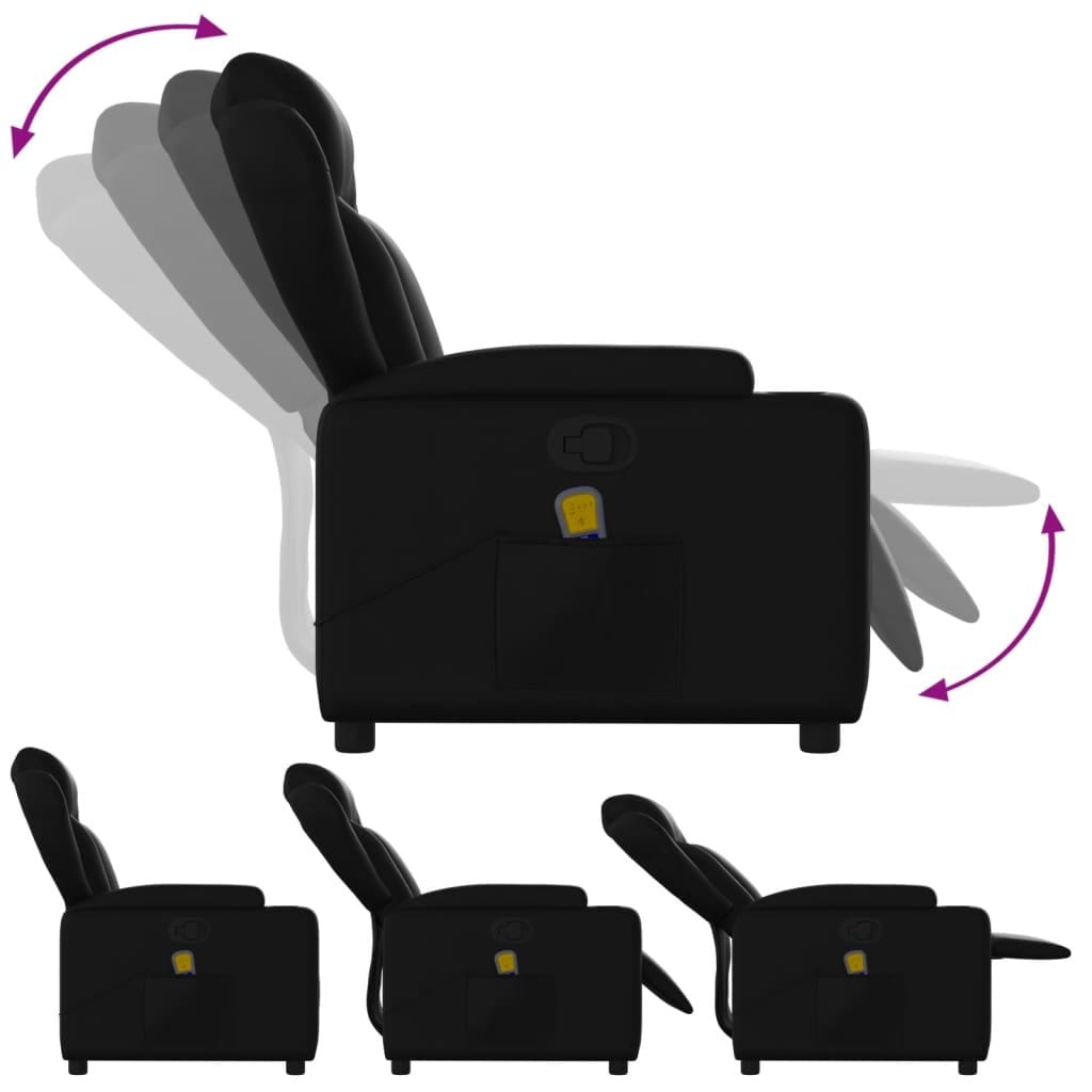 This modern massage recliner chair mixes trendy style with top-notch comfort to up your relaxation game. It’s got a classy black faux leather cover that looks smart and fits nicely in living rooms or bedrooms, turning any space into a cozy retreat.