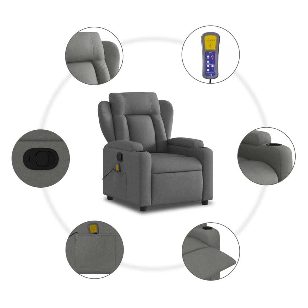 This massage recliner chair blends modern style with fantastic functionality, making it a brilliant addition to any living space. The dark grey fabric provides a sharp look while keeping you comfy for relaxation or home theater moments, perfect for any adult wanting to chill out.
