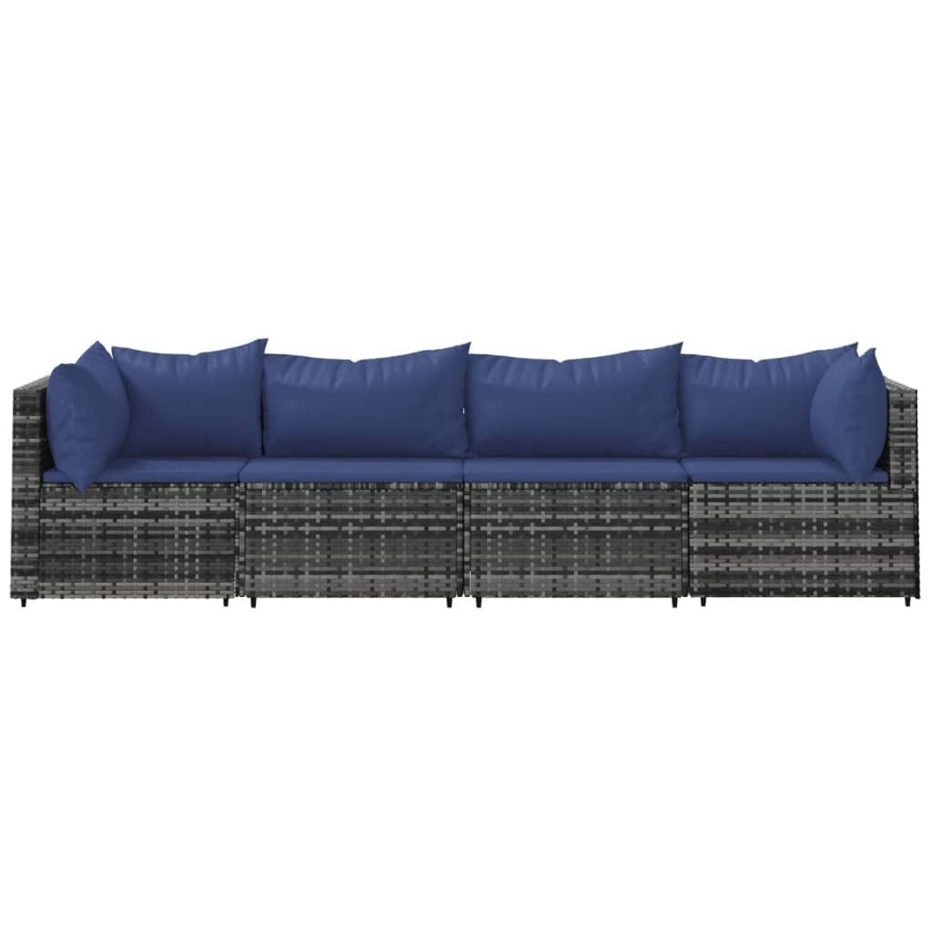 This 4-piece modular patio lounge set mixes modern style and loads of comfort for your outdoor setup. The smart grey color, with striking blue accents, looks great and boosts your garden, lawn, or backyard, making it perfect for get-togethers or just chilling out.
