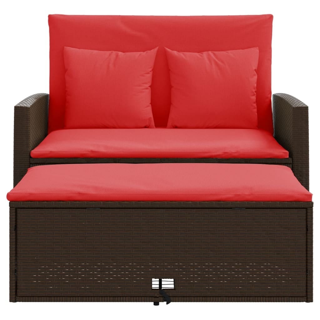 This 2-Seater Adjustable Garden Sofa merges style and comfort, making it a perfect addition to your outdoor space. Made with a brown poly rattan frame and bright red cushions, this versatile seating setup is ideal for balconies or gardens, where relaxation and aesthetics go hand in hand.