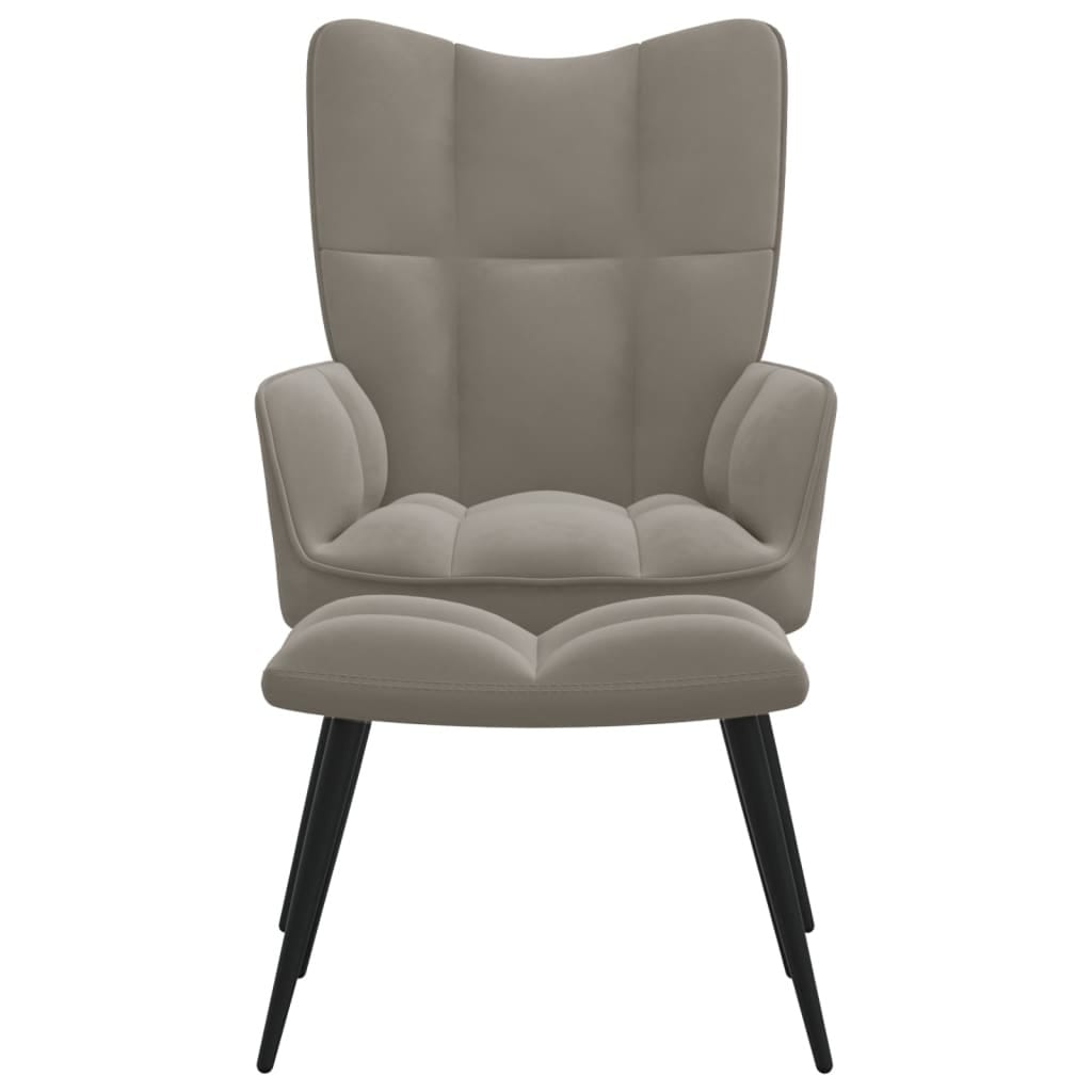 Relaxing Chair With Stool Light Grey Velvet Medium Footrest