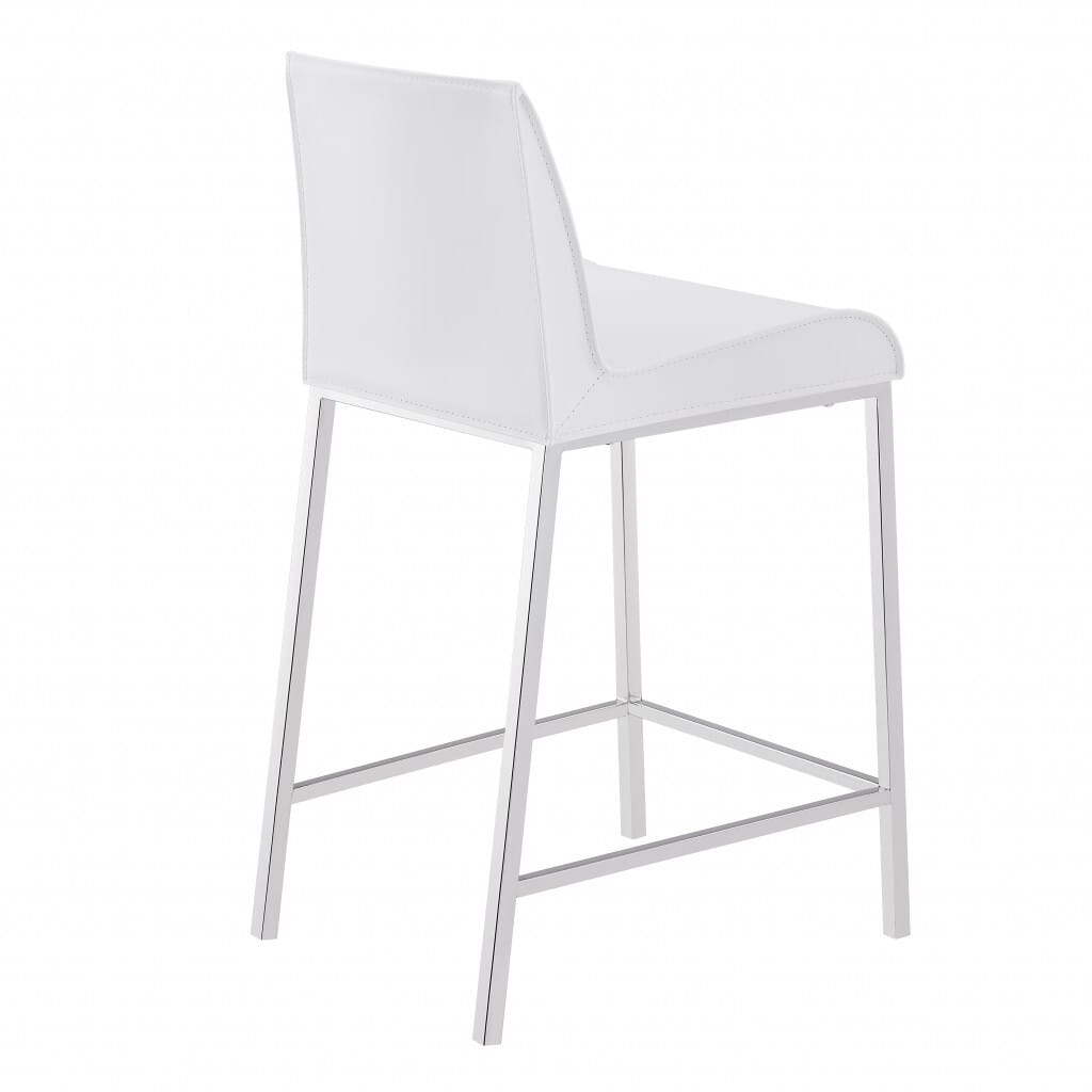 This set of two 24-inch white and silver steel low back counter height bar chairs with footrest will be the perfect way to add some cool design and utility to your space similar to what you find in your favorite cafes or pubs. The silver coloration of the high quality steel base marries nicely with the white upholstered seat. The square shape of the seat combines with a low back to give this chair a comfortable and fashionable look. Designed with a footrest for comfort and convenience. 34.26-inch H x 17.33-inch W x 19.89-inch D