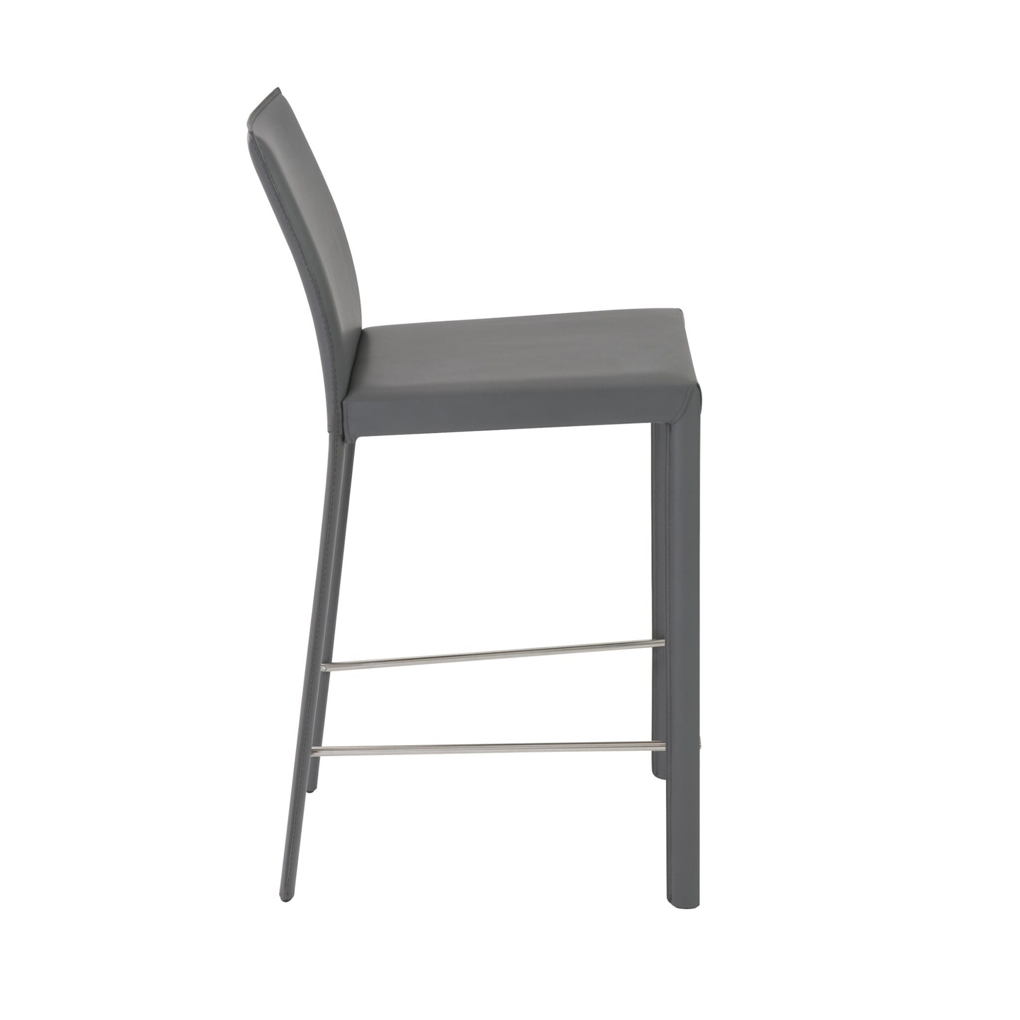 Comfortable enough to sit in for awhile, this set of two 26-inch gray steel low back counter height bar chairs with footrest will transcend the look of your room. A sleek gray monotone color gives this steel and upholstered stool a fresh and updated look. The square shape of the seat combines with a low back to give this chair a comfortable and fashionable look. Designed with a footrest for comfort and convenience. 37.01-inch H x 16.93-inch W x 21.07-inch D