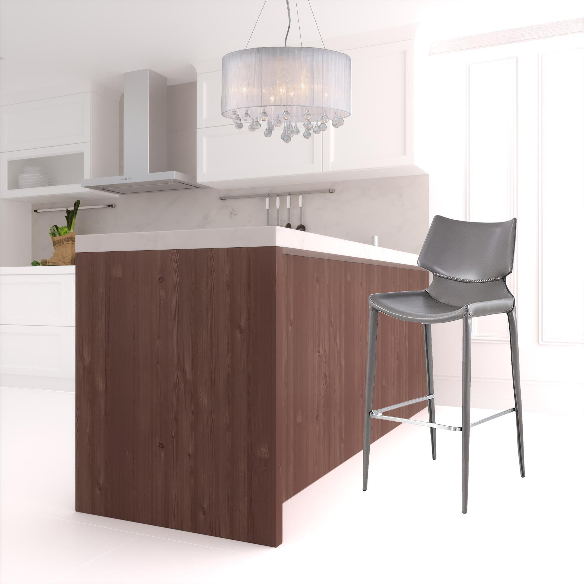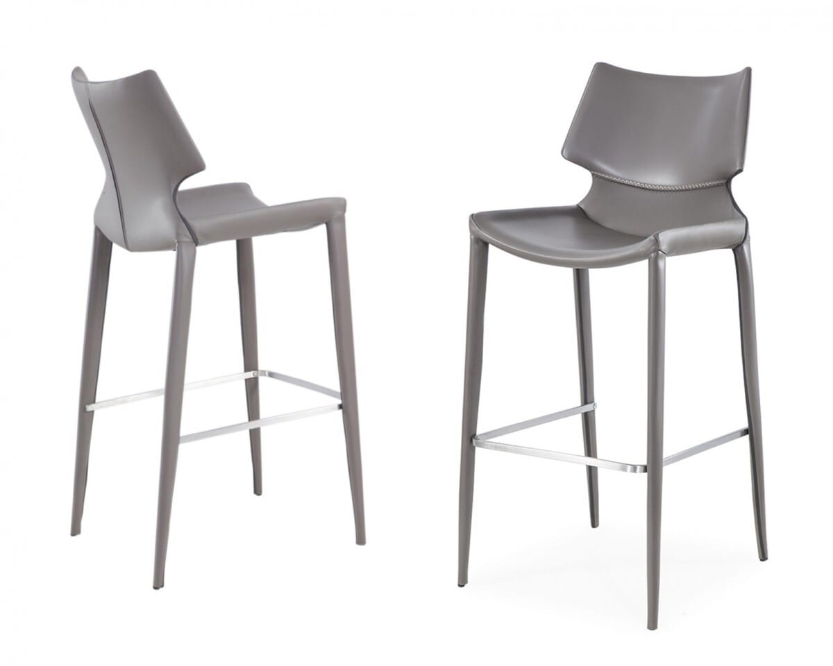 The perfect way to add some extra seating in your home, this set of two 30-inch gray faux leather and steel low back bar height bar chairs with footrest will elevate the look and vibe of your room. A sleek gray monotone color gives this steel and faux leather stool a fresh and updated look. The square shape of the seat combines with a low back to give this chair a comfortable and fashionable look. Designed with a footrest for comfort and convenience. 43.5-inch H x 18-inch W x 23-inch D