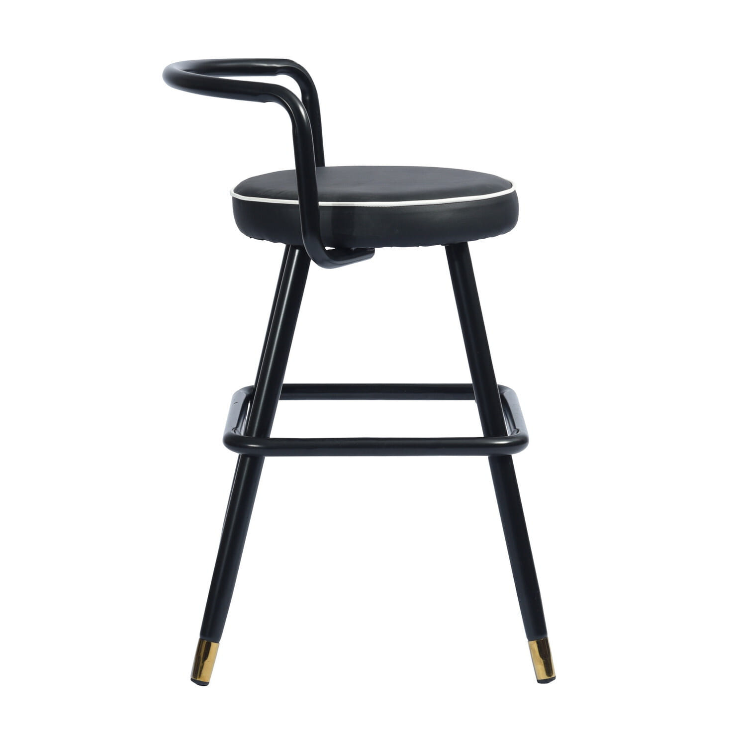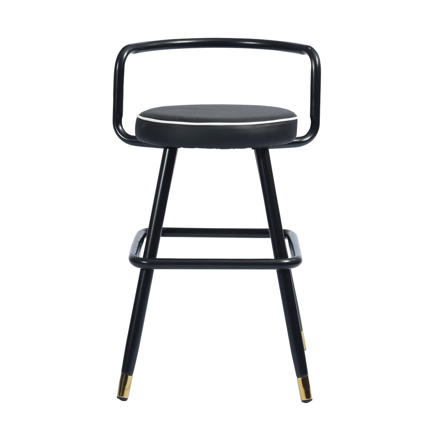 Comfortable enough to sit in for awhile, this set of two 32″ black backless counter height bar chairs will transcend the look of your room. A solid black steel frame is finished off with a matching black upholstered seat, giving this chair a chic monotone look. Designed to be good looking and practical, this backless bar chair features a round shaped seat. This stool will look great in your dining room, kitchen, bar, or recreation room. 31.5″ H x 18.5″ W x 17.5″ D