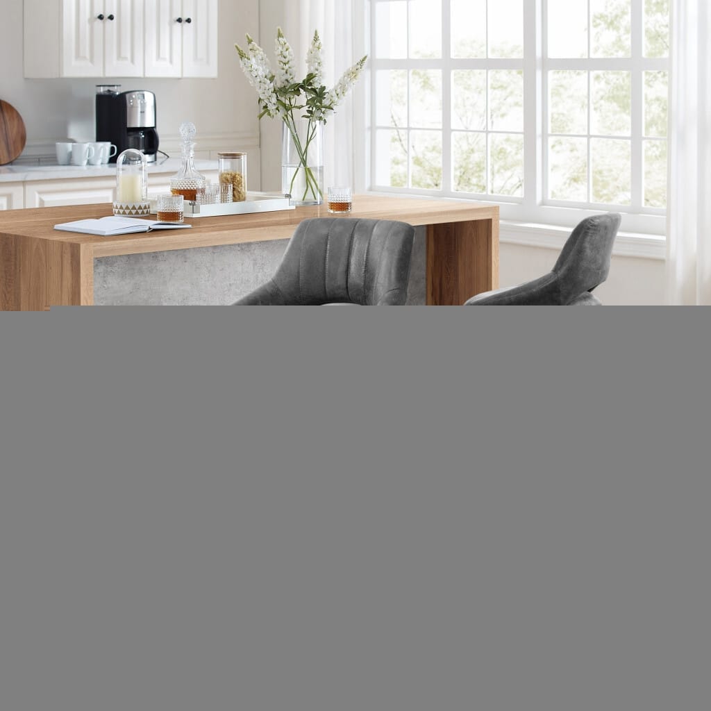 Be the first to review “Set of Two 32″ Gray And Black Faux Leather And Steel Swivel Low Back Adjustable Height Bar Chairs”